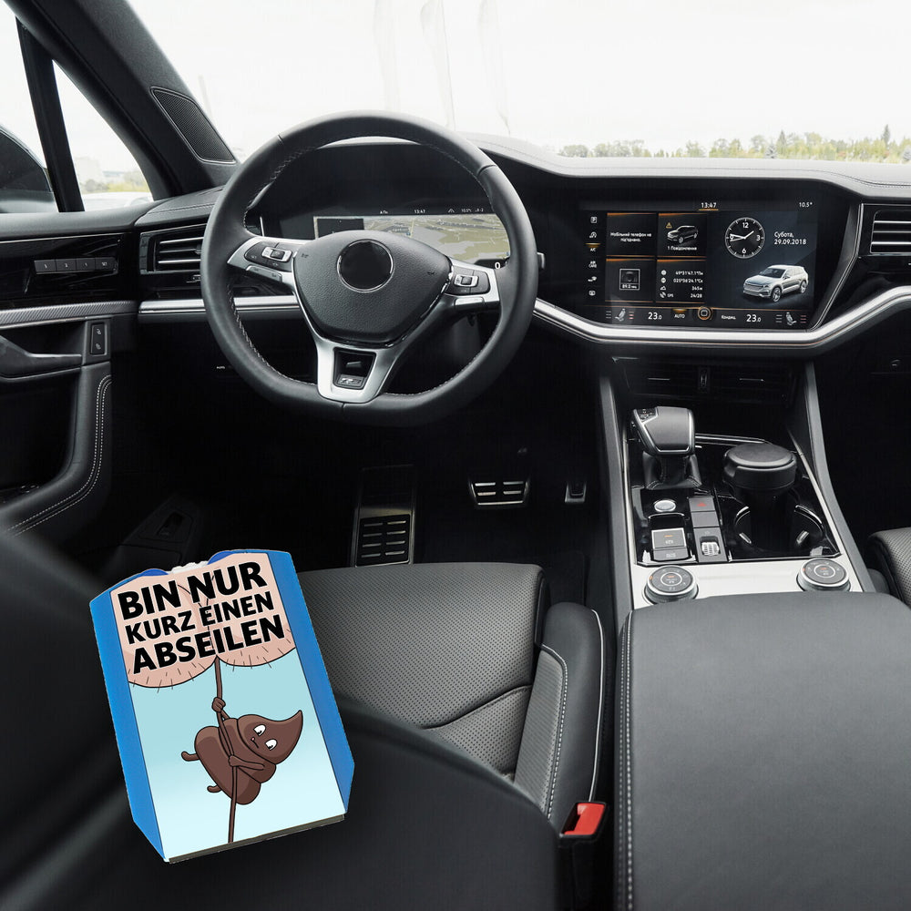 Diese Bin nur kurz einen abseilen Kaka Parkscheibe mit 2 Einkaufswagenchips ist die perfekte Wahl für alle Autofahrer, die Wert auf einen witzigen Look legen. Die hochwertige Verarbeitung sorgt dafür, dass die Parkscheibe der StVO entspricht und gleichzeitig äußerst robust und langlebig ist. Zusätzlich kannst du mit den beiden enthaltenen Einkaufswagenchips bares Geld sparen. Mit dieser Parkscheibe hast du ein praktisches und zugleich witziges Geschenk für jeden Autofahrer.