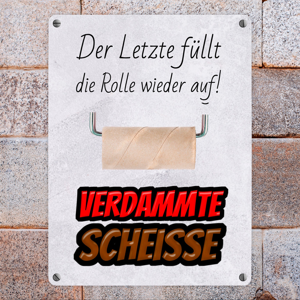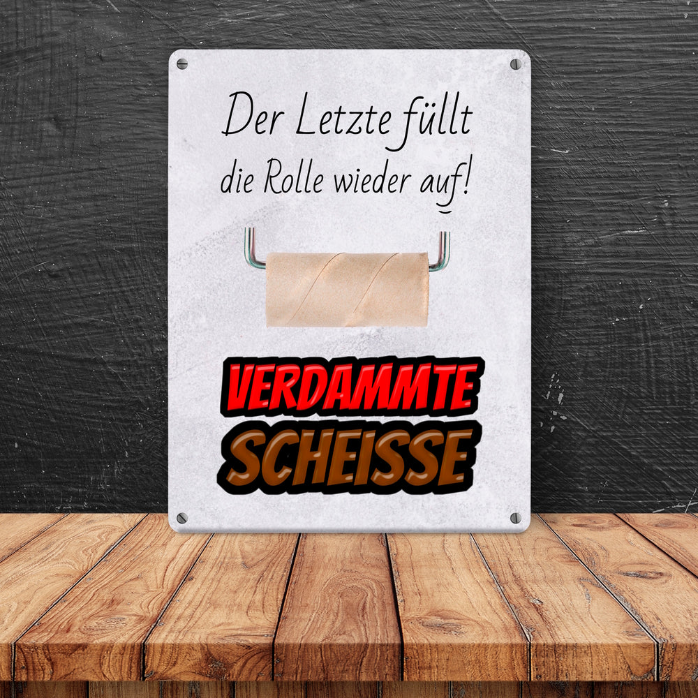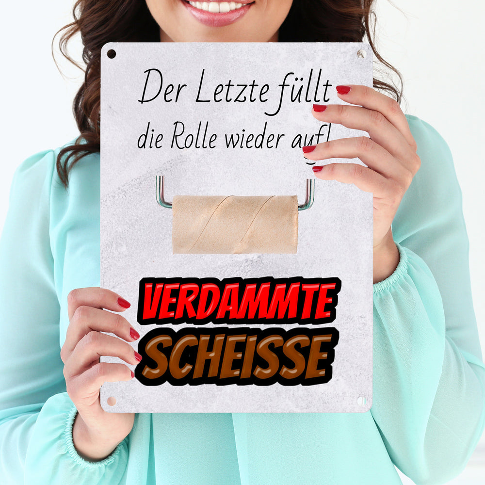 - Wer kennt das nicht?! Man sitzt gemütlich auf dem Klo und macht sein großes Geschäft. Man ist nach vollbrachter Leistung fertig und möchte sich den Allerwertesten abwischen. Und es ist kein Klopapier mehr da!!! Wer die Rolle leer gemacht hat soll auch wieder neues Klopapier holen. Dieses Metallschild gehört in jedes WC und diese Toilettenregel sollte jeder beherzigen.