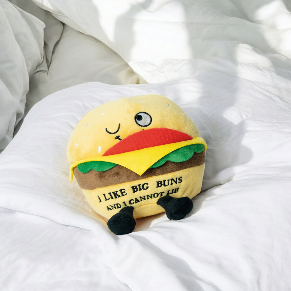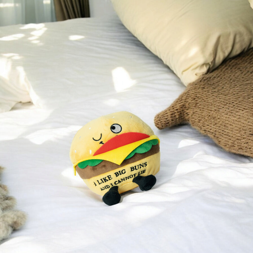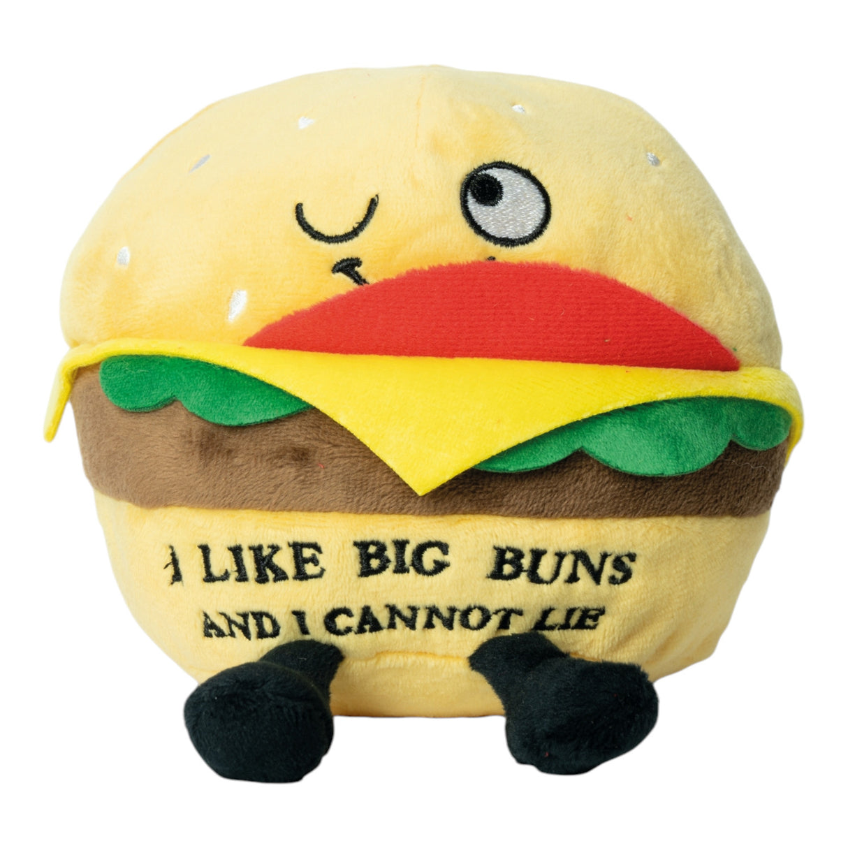 1x Punchkins Burger Kuscheltier mit dem Spruch I Like Big Buns and I Cannot Lie.