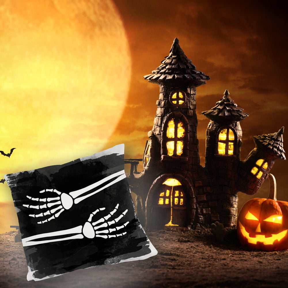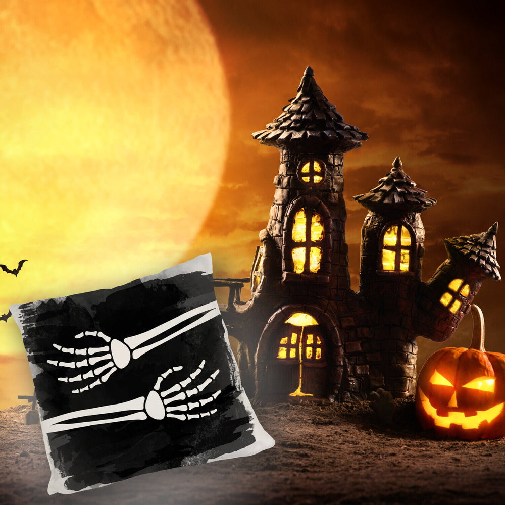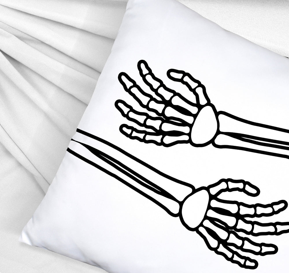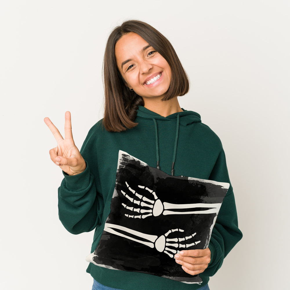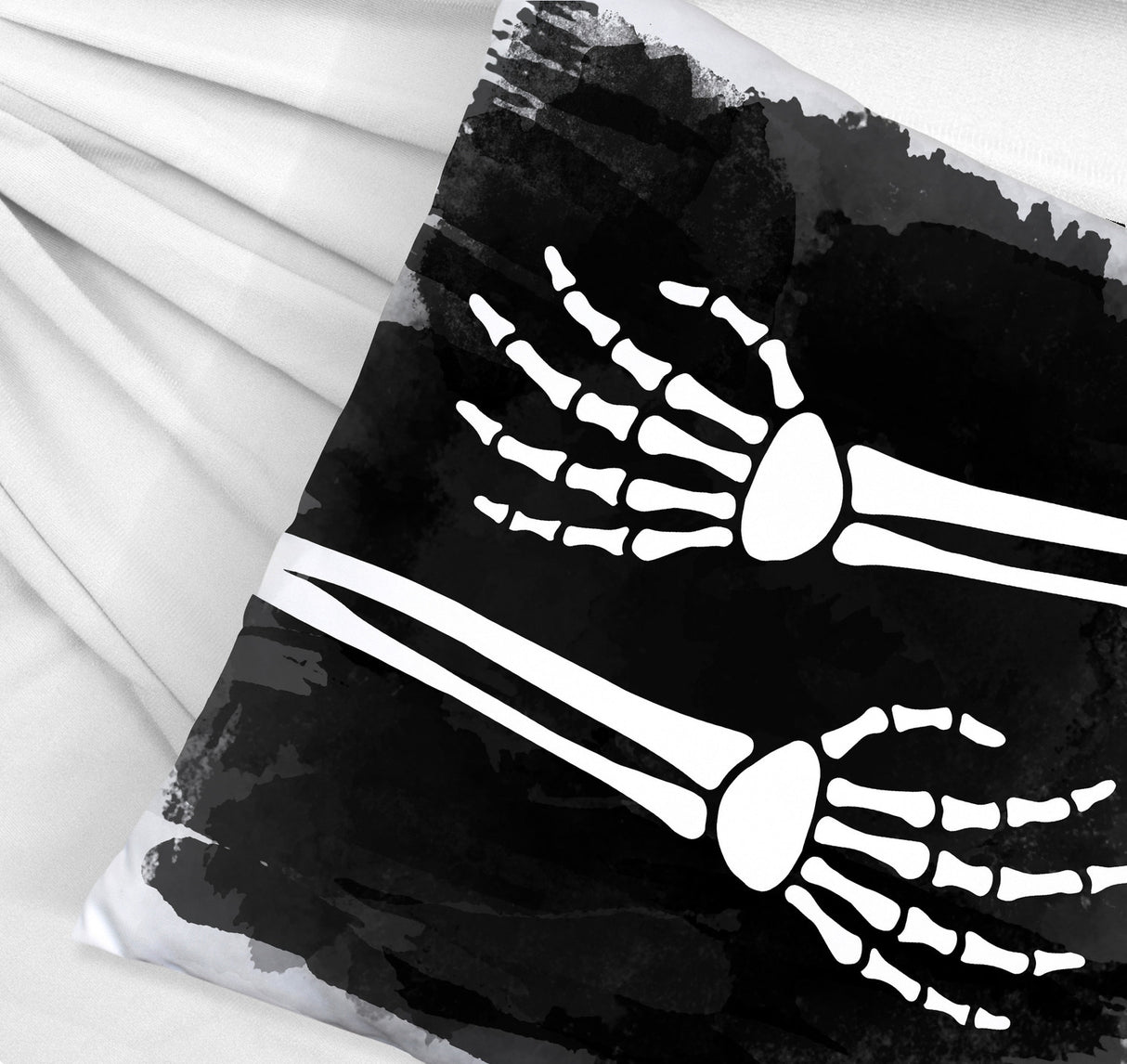 • 1x Skelett-Arme Kissen mit schwarzem Hintergrund für Horror-Filmabende in der gewählten Ausführung