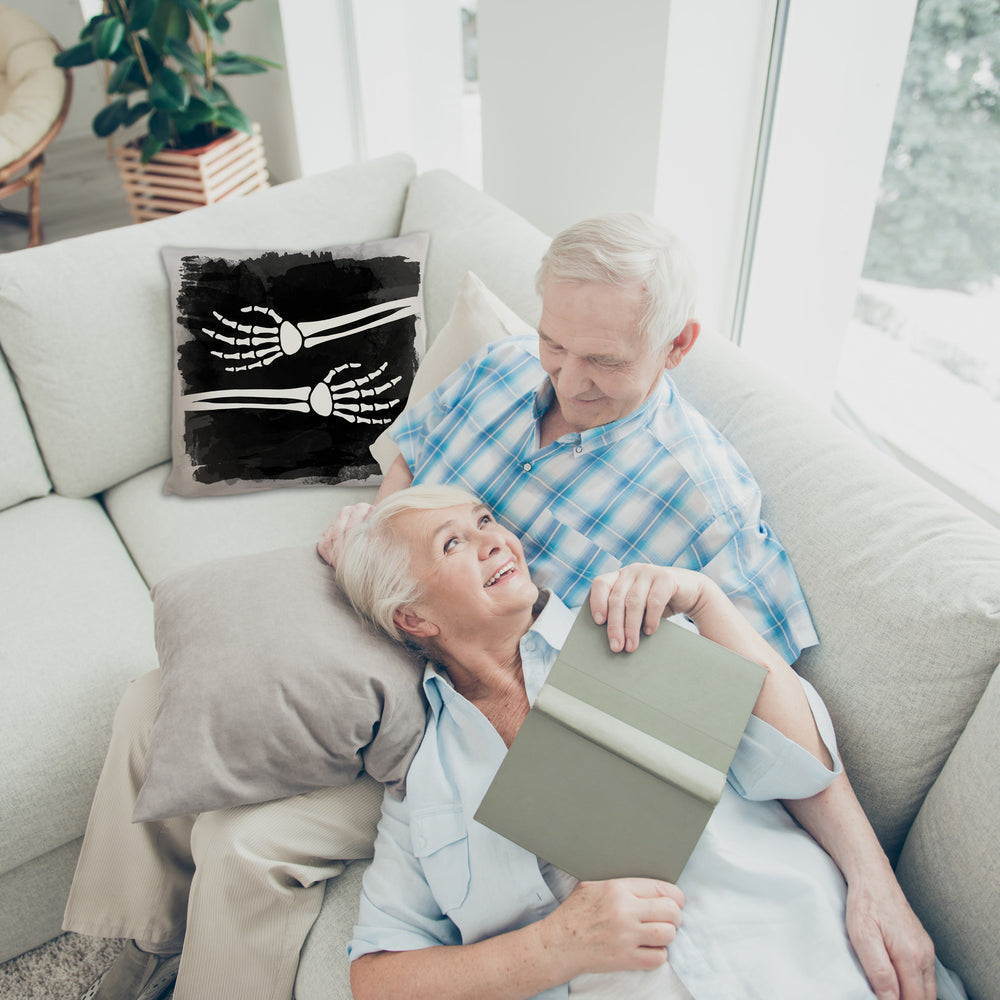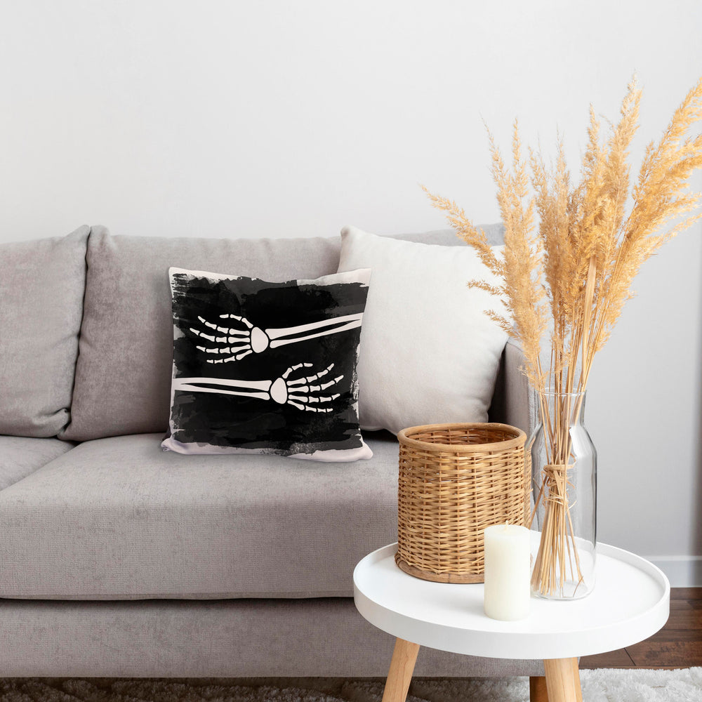 Skelett-Arme Kissen mit schwarzem Hintergrund für Horror-Filmabende