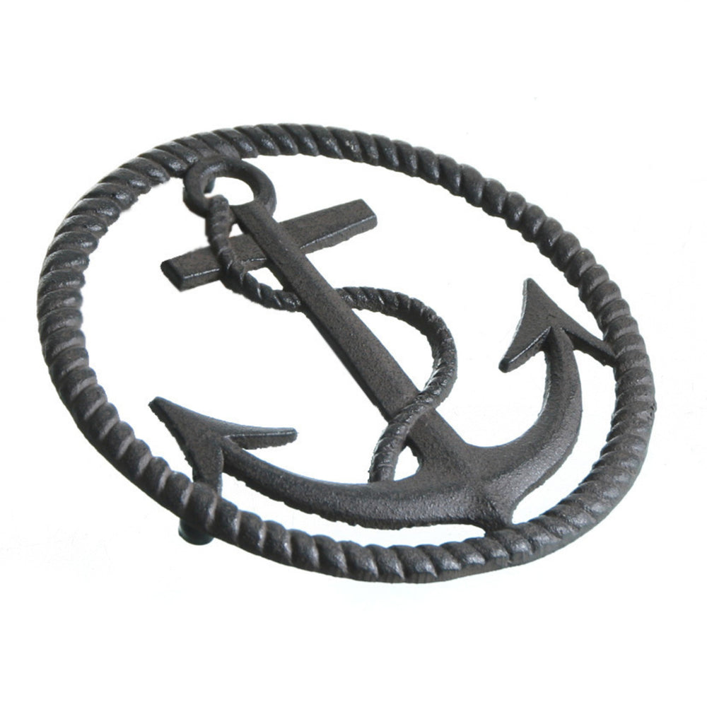 Der Anker Topfuntersetzer ist die perfekte Ergänzung für jede maritime Einrichtung. Er ist aus hochwertigem Gusseisen gefertigt und verleiht Ihrer Küche oder Ihrem Esszimmer eine maritim-rustikale Note. Mit seinem Detailreichtum und den drei Gumminoppen auf der Unterseite sorgt der Untersetzer für stabilen Halt. Der Anker Topfuntersetzer ist sowohl funktional als auch ästhetisch ein wahrer Blickfang und eignet sich hervorragend, um kleinere Gegenstände wie beispielsweise Schalen oder Tassen abzustellen. Mit diesem nautischen Accessoire holen Sie sich ein Stück Seefahrer-Romantik in Ihr Zuhause!