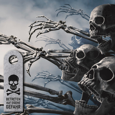 Metallschild mit Totenkopf Leben nach dem Tod Einbrecher Warnung Drohung