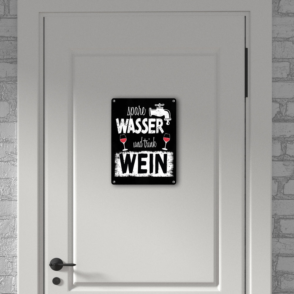 Spare Wasser und trink Wein Metallschild