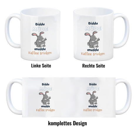 €20,95Grundpreis /Nicht verfügbar Kaffeebecher mit Hasenmotiv und Spruch - Biddu müde muddu Kaffee trinken