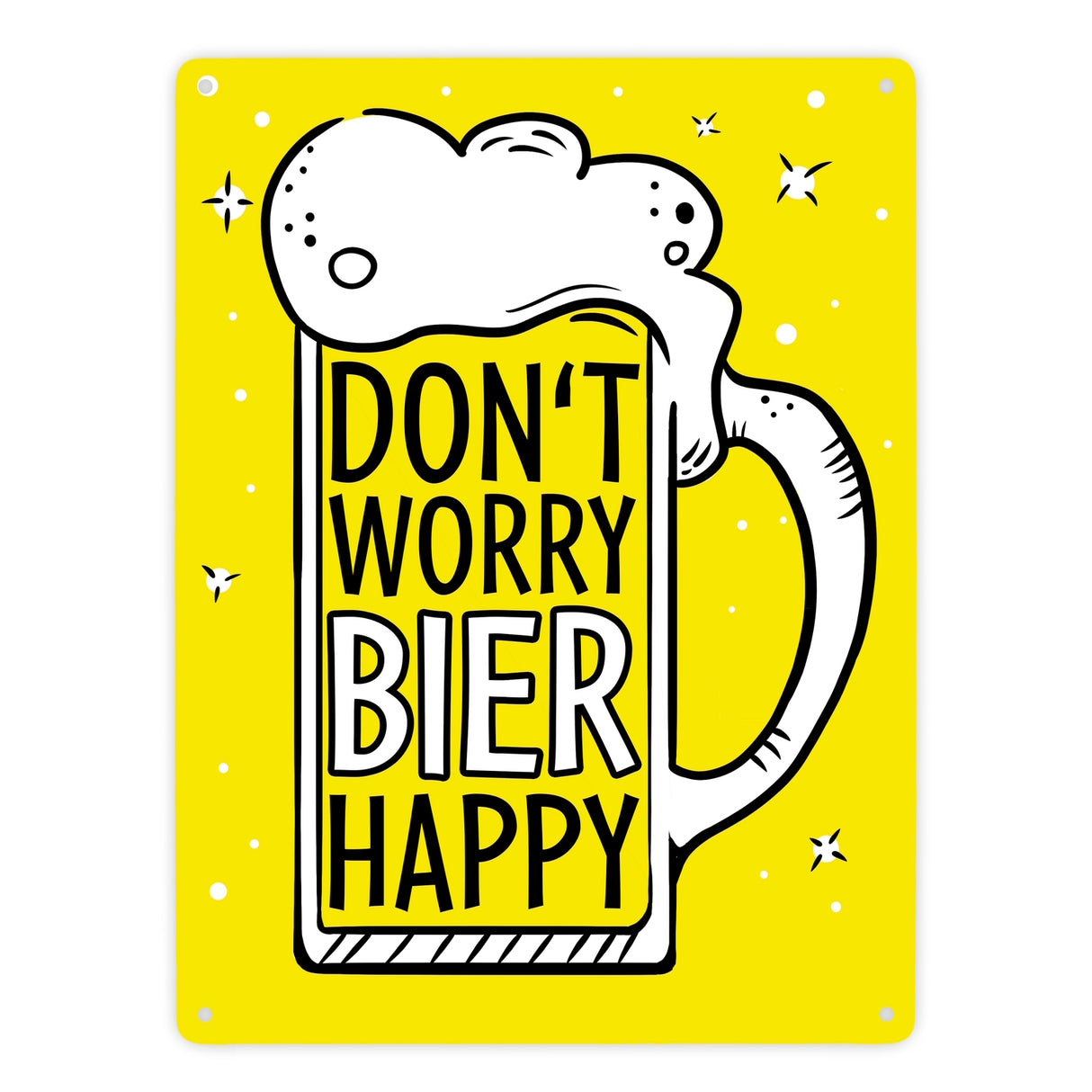 - 1x Don't worry Bier happy - Metallschild mit Bierkrug Motiv in der gewählten Größe