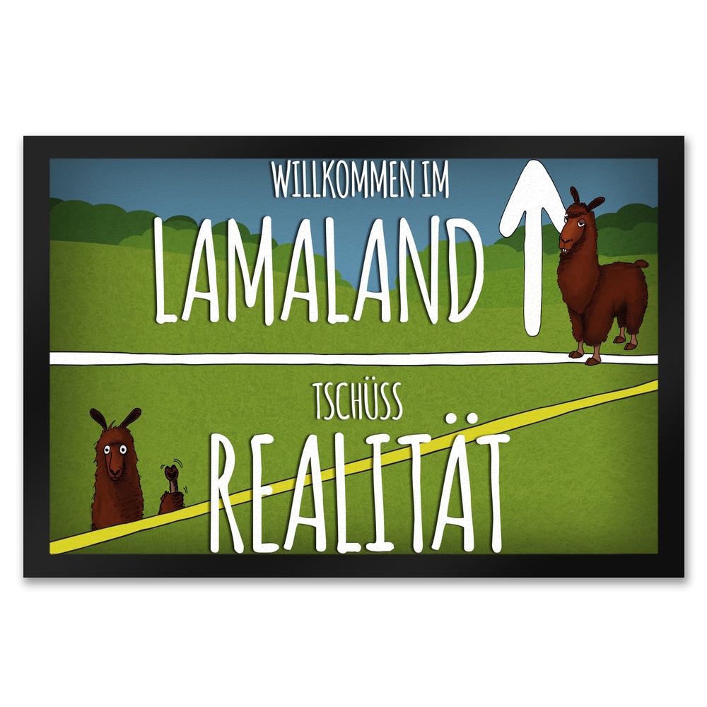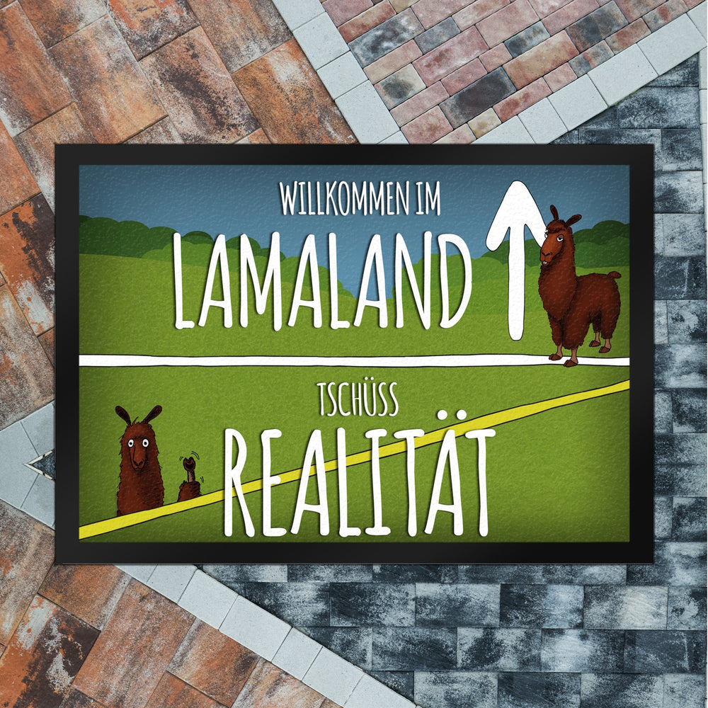 - 1x Willkommen im Lamaland - Tschüss Realität Fußmatte in der gewählten Größe