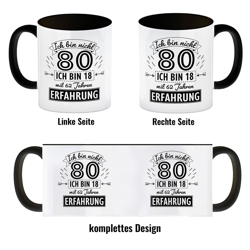 • 1x Witziger Kaffeebecher für den 80. Geburtstag mit Motiv: Erfahrung in der gewählten Ausführung
