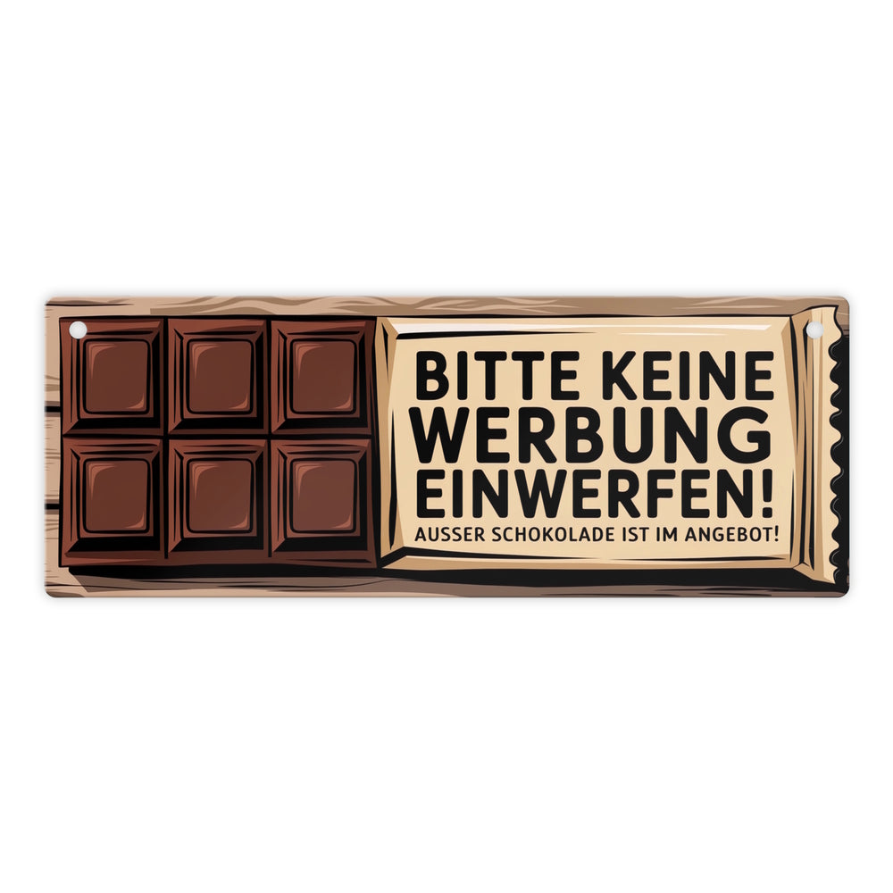 - Bestellen Sie jetzt dieses hochwertige, liebevoll gestaltete und bedruckte Metallschild, das jedem Schokoladenfan ein Grinsen ins Gesicht zaubert. Machen Sie Ihren Eingangsbereich zur Schokoladen-Zone!