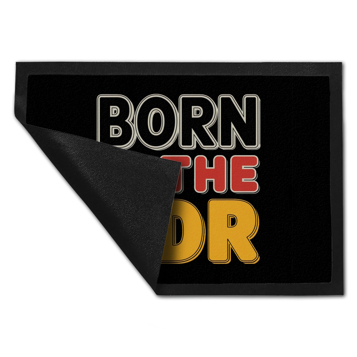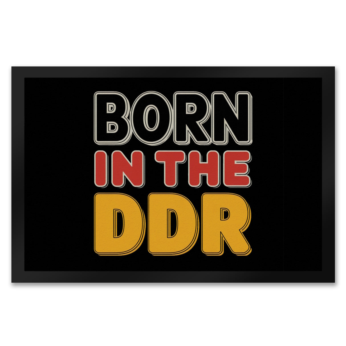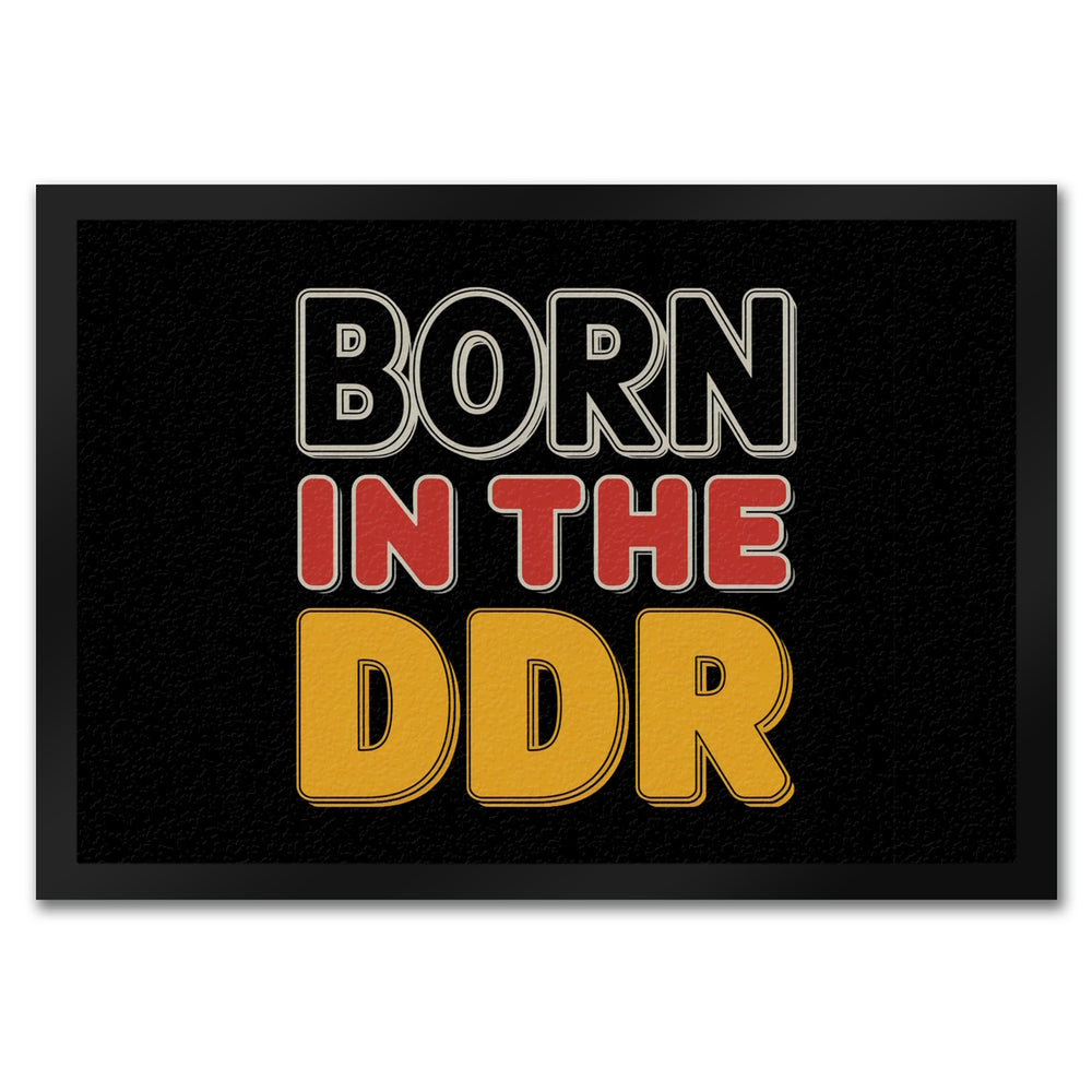 - Die "BORN in the DDR" Fußmatte begeistert mit einem markanten Retro-Design in schwarzen, roten und gelben Buchstaben auf schwarzem Hintergrund. Der Spruch "BORN in the DDR" weckt nostalgische Gefühle und ist ideal für Liebhaber ostdeutscher Kultur.