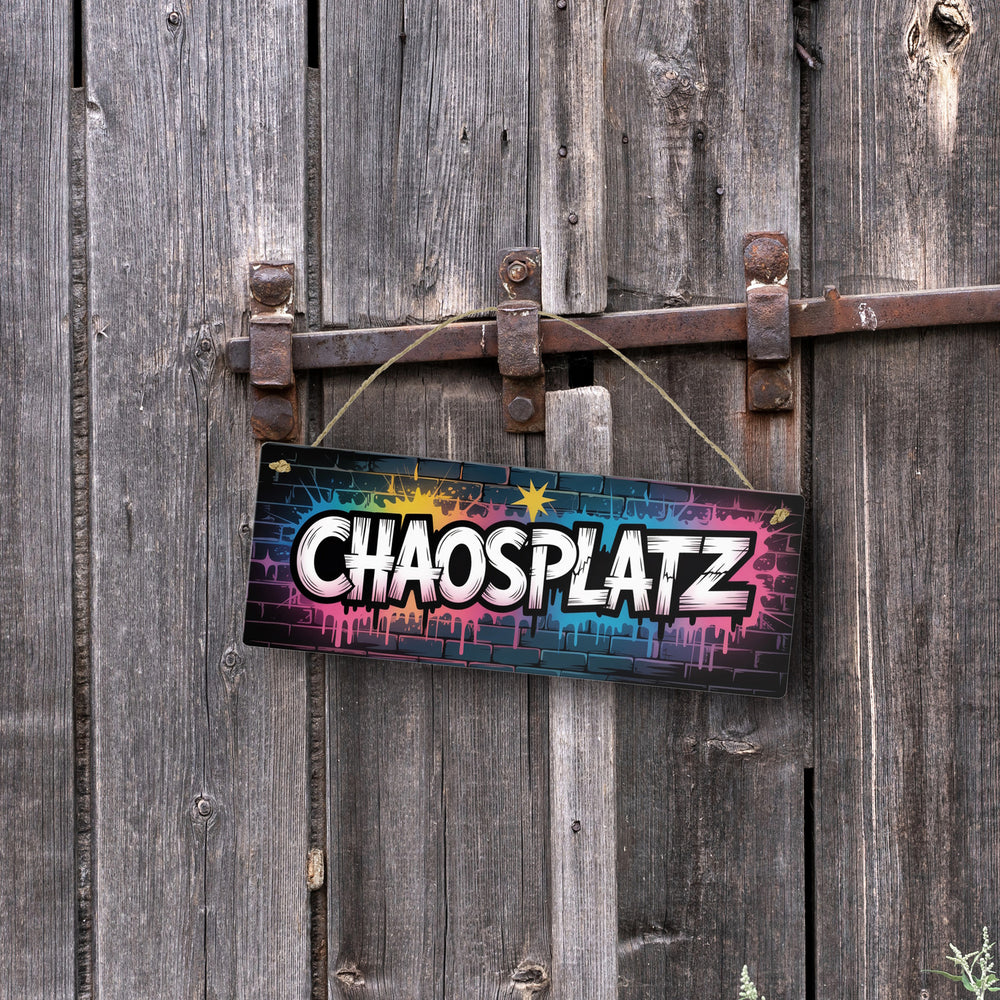 - Warte nicht länger - hole dir jetzt das Chaosplatz Graffiti Metallschild! Mit liebe zum Detail designt und hochwertig bedruckt, garantiert es Qualität, die beeindruckt. Verleihe deinem Zuhause den urbanen Charme, den es verdient, und bringe ein Stück Streetart in dein Leben.
