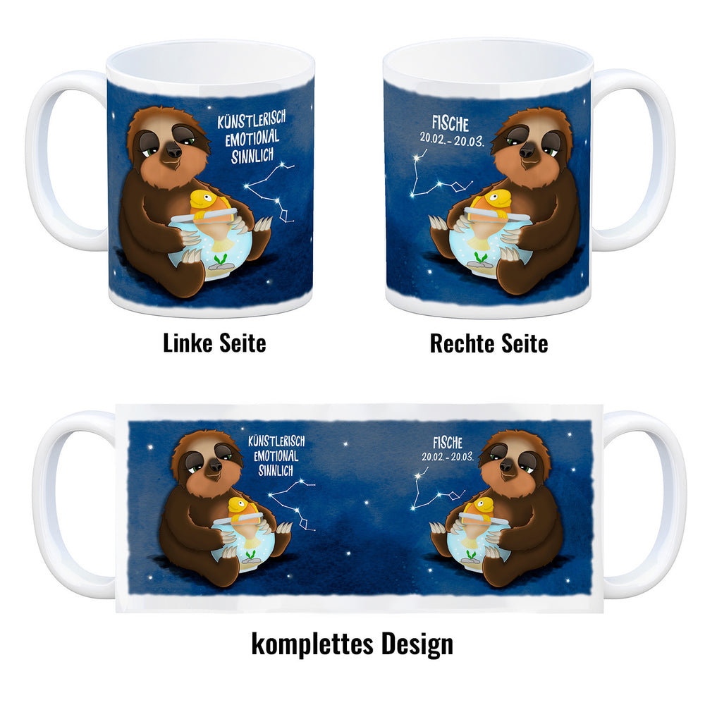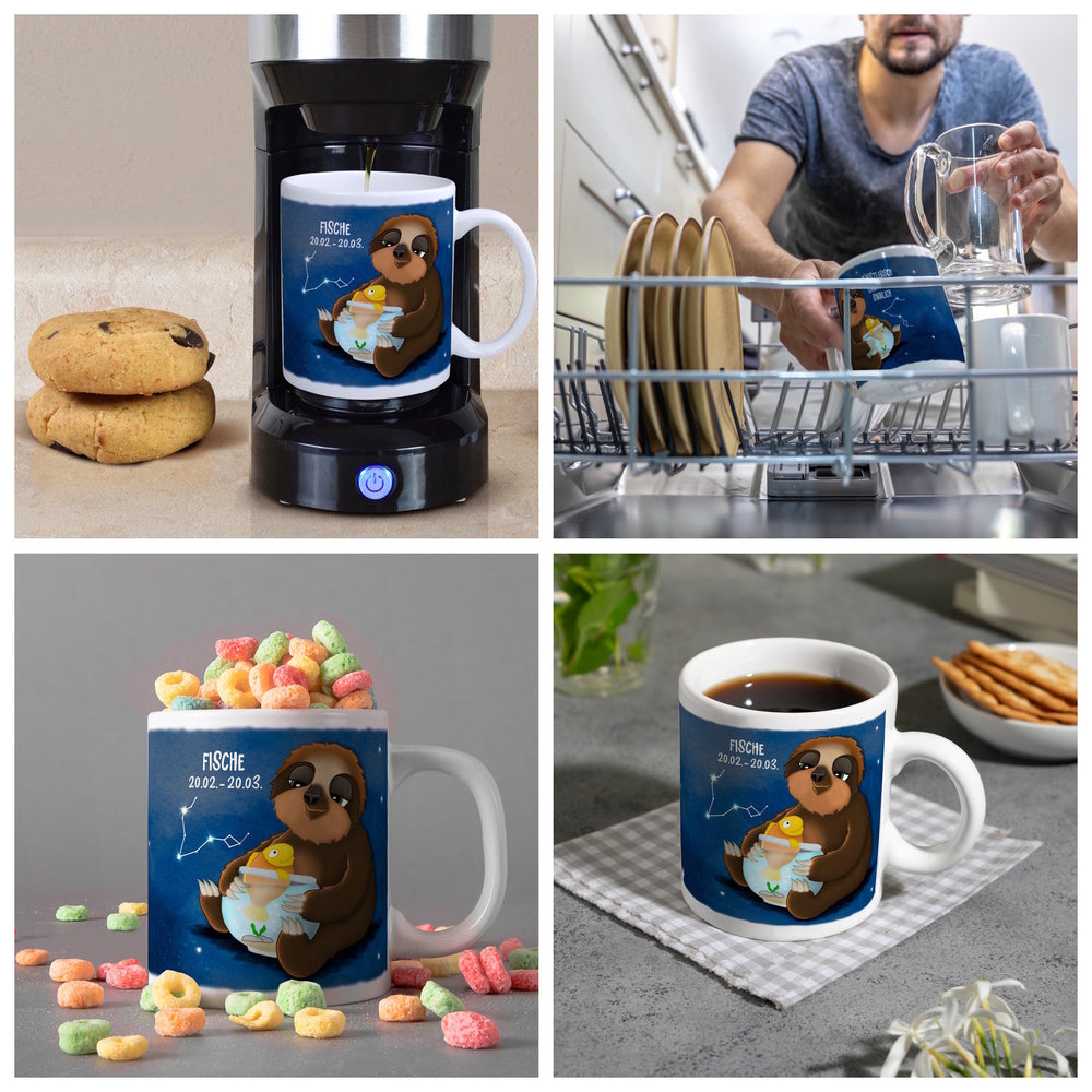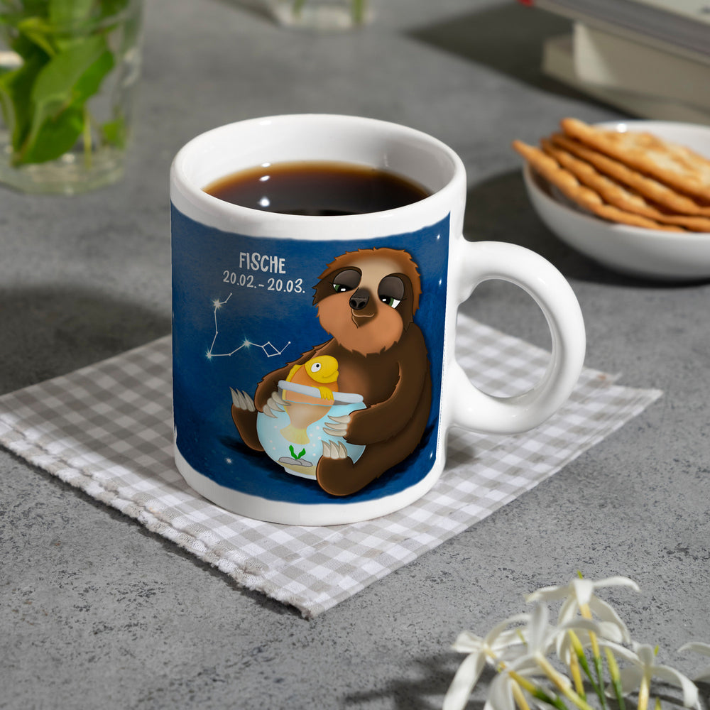 • Lieferumfang: Kaffeebecher mit Faultier Sternzeichen Fische Motiv