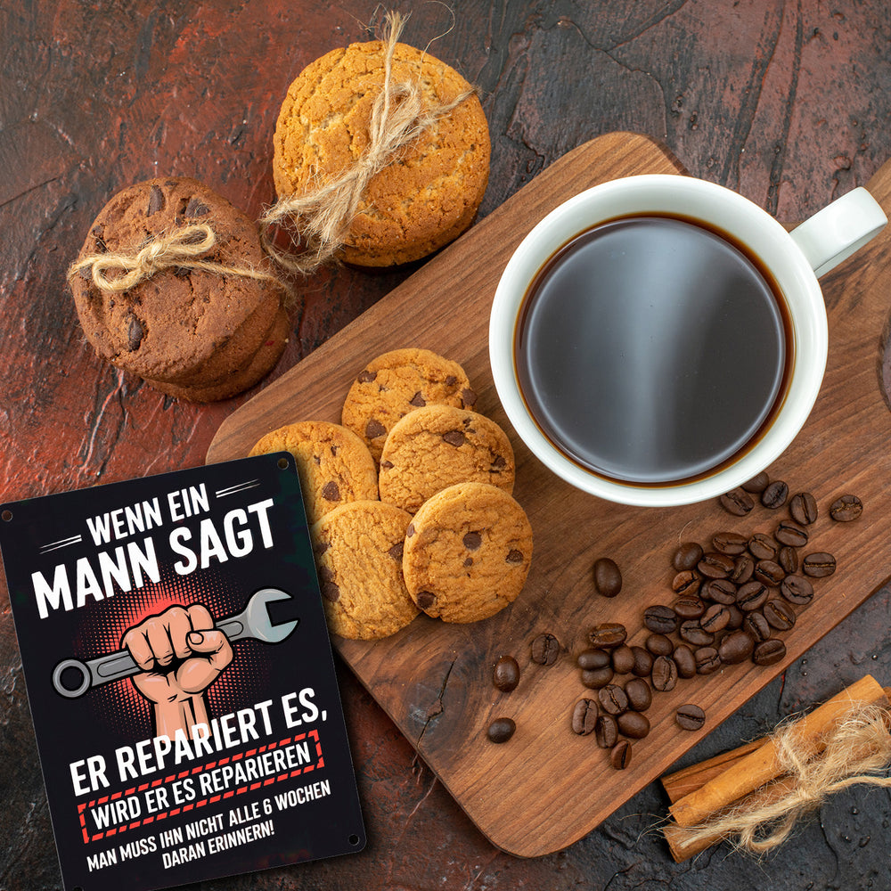- Dieses Metallschild ist nicht nur ein echter Hingucker, sondern auch ein Garant für Schmunzler. Ob in der Garage, Werkstatt oder im Wohnzimmer – es begeistert Handwerker und treue Partner gleichermaßen. Ein humorvolles Accessoire, das handwerkliches Können und Zuverlässigkeit mit einem Augenzwinkern feiert!