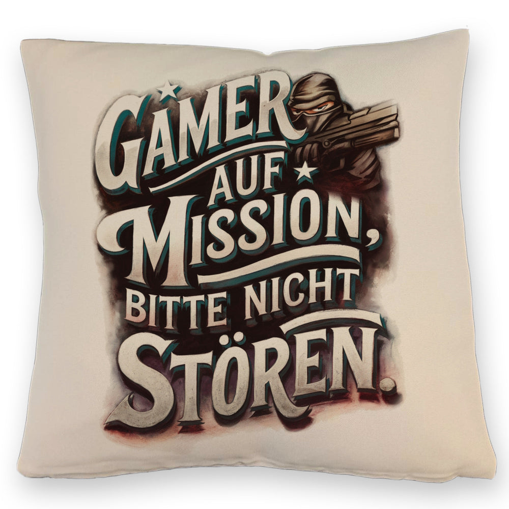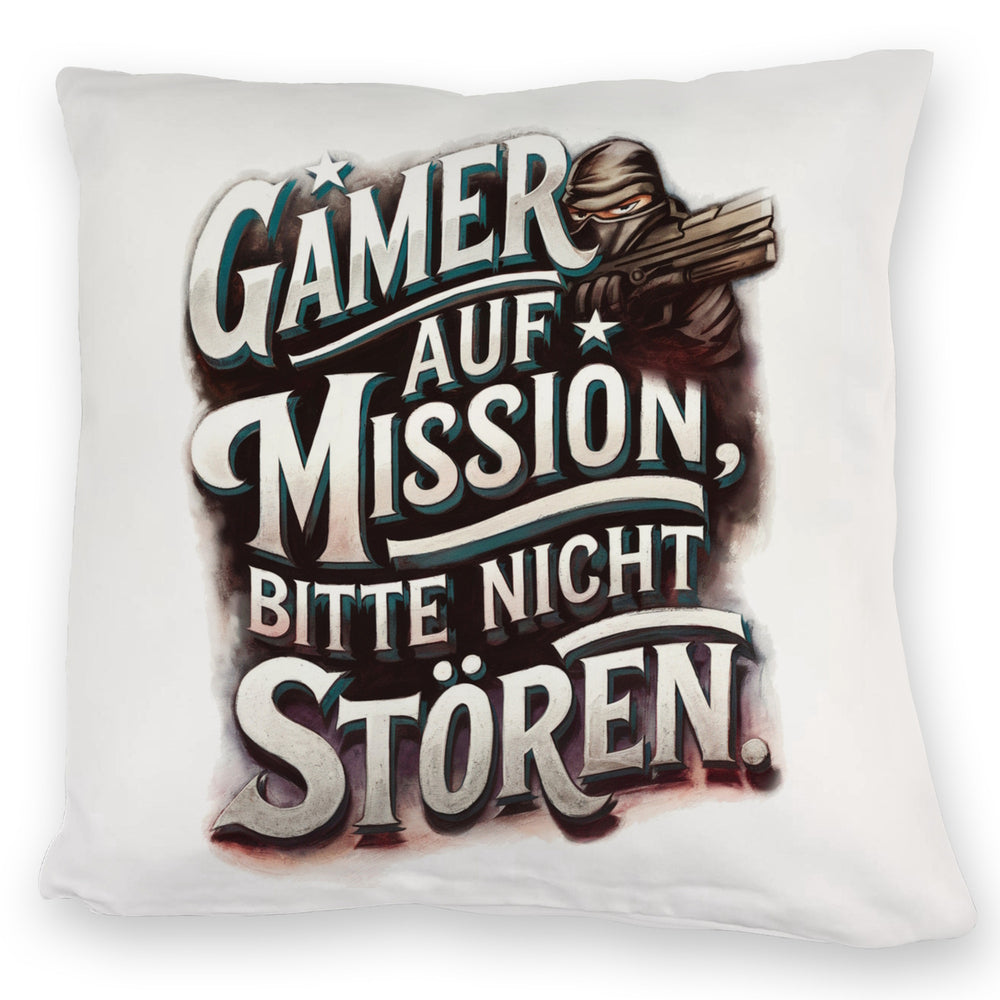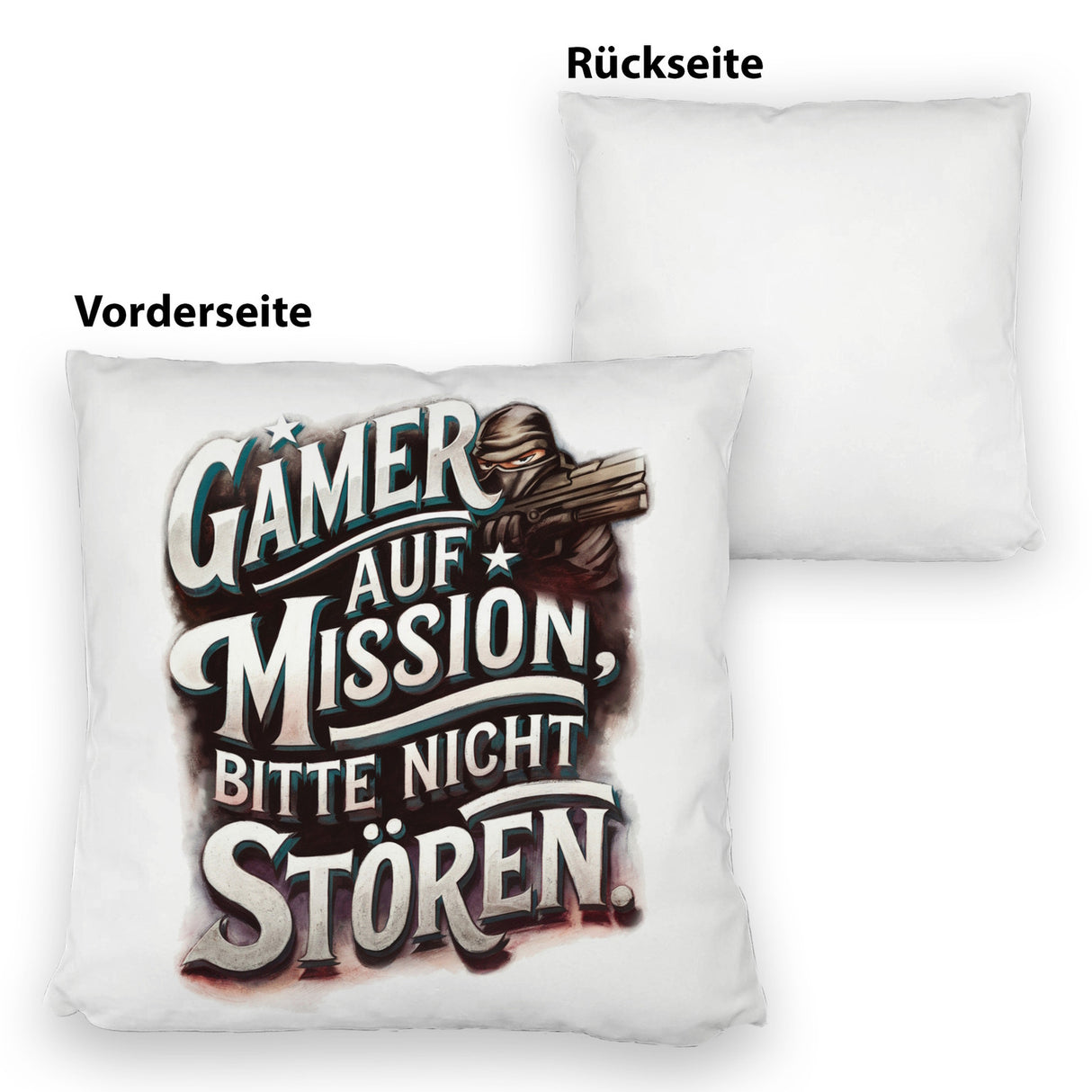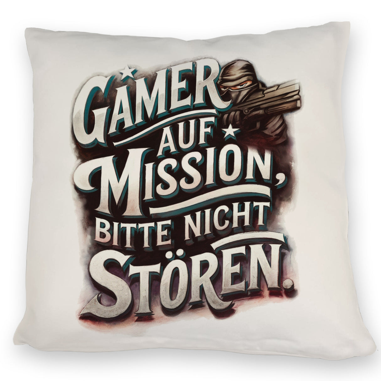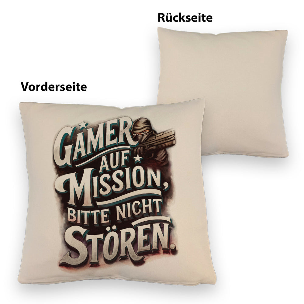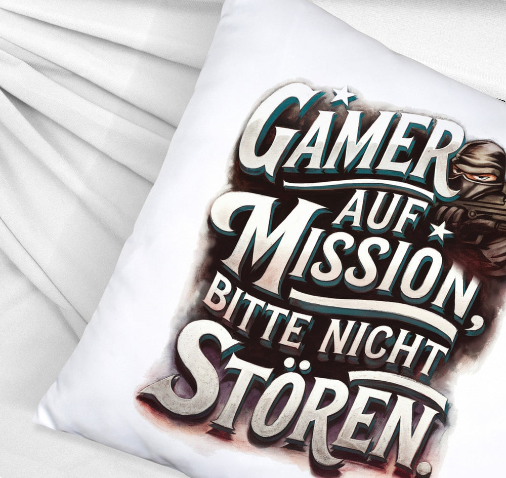 • 1x Gamer auf Mission Kissen Bitte nicht stören in der gewählten Ausführung