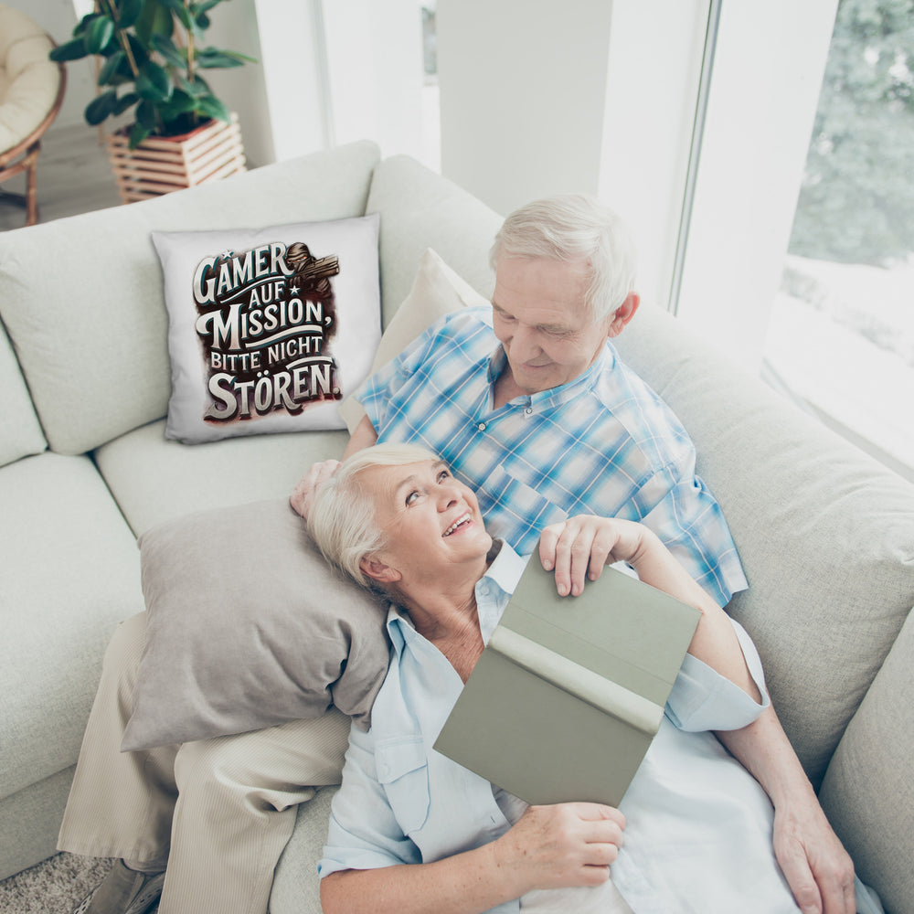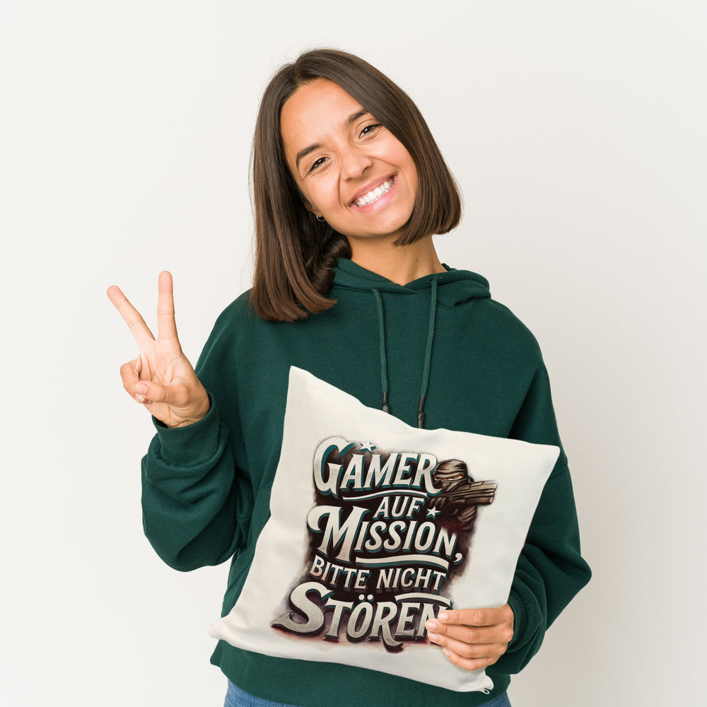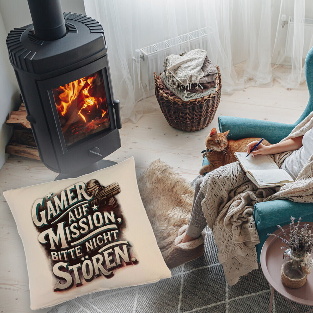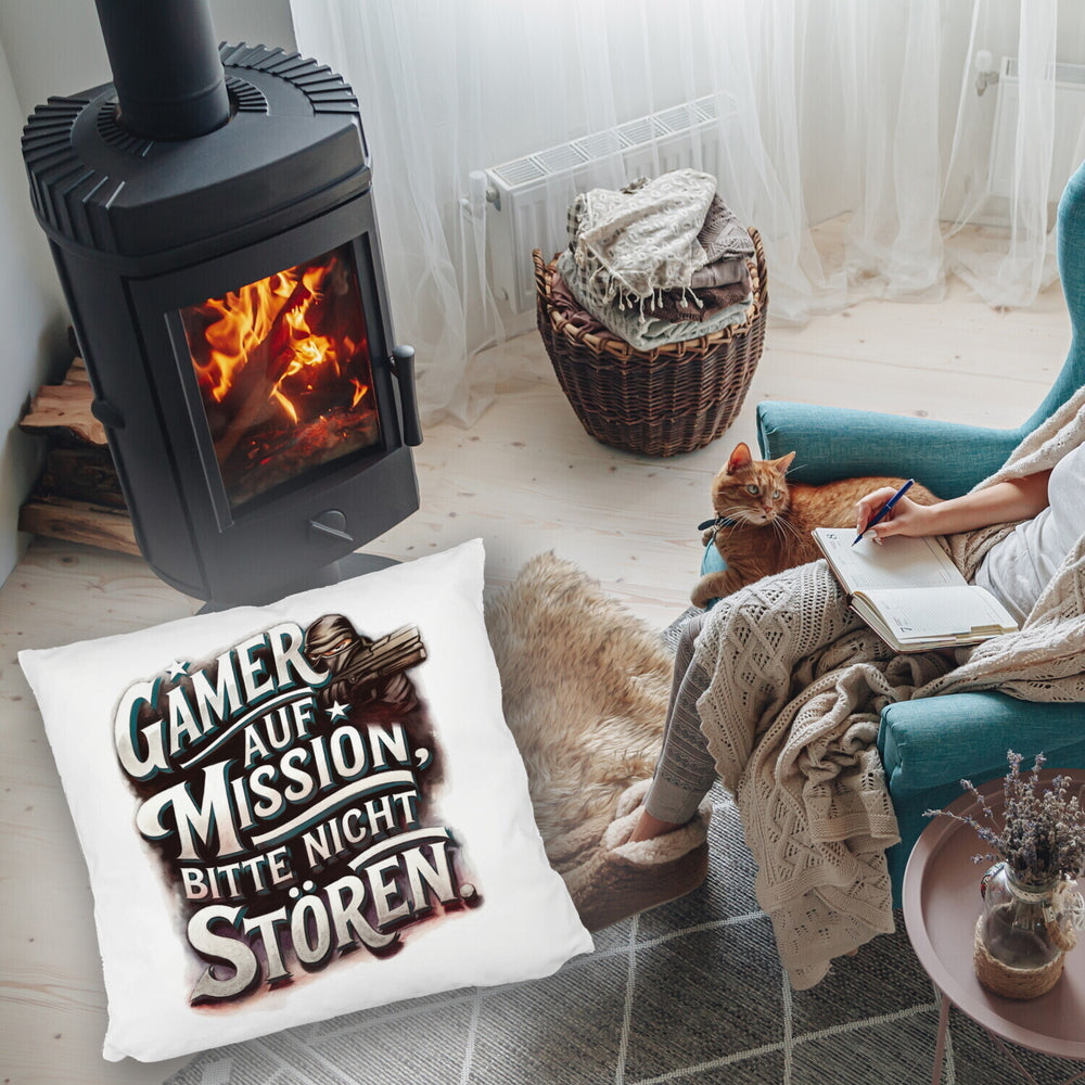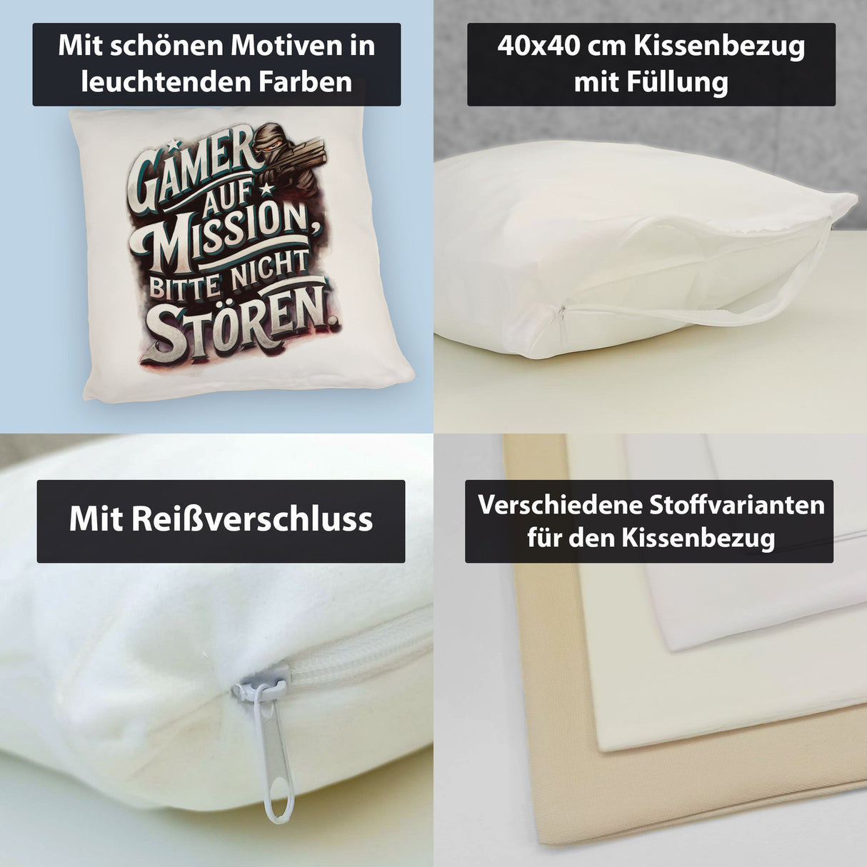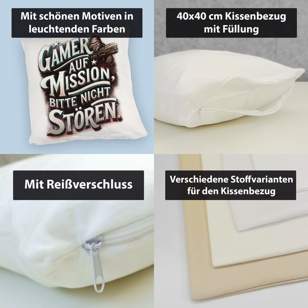 • 1x Gamer auf Mission Kissen Bitte nicht stören in der gewählten Ausführung