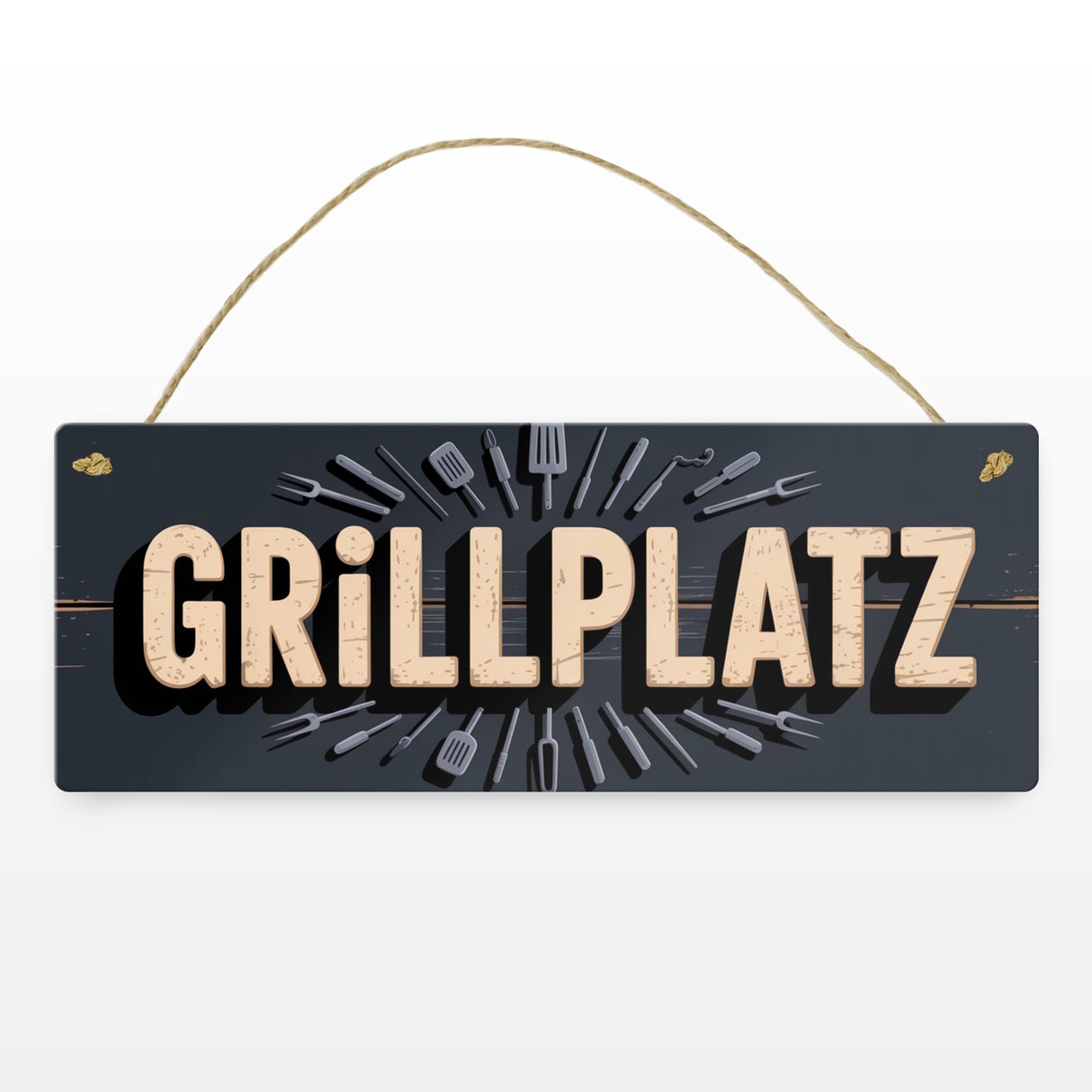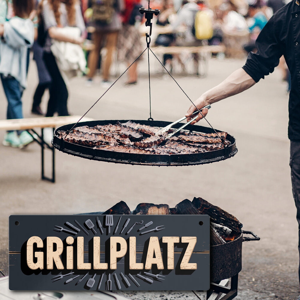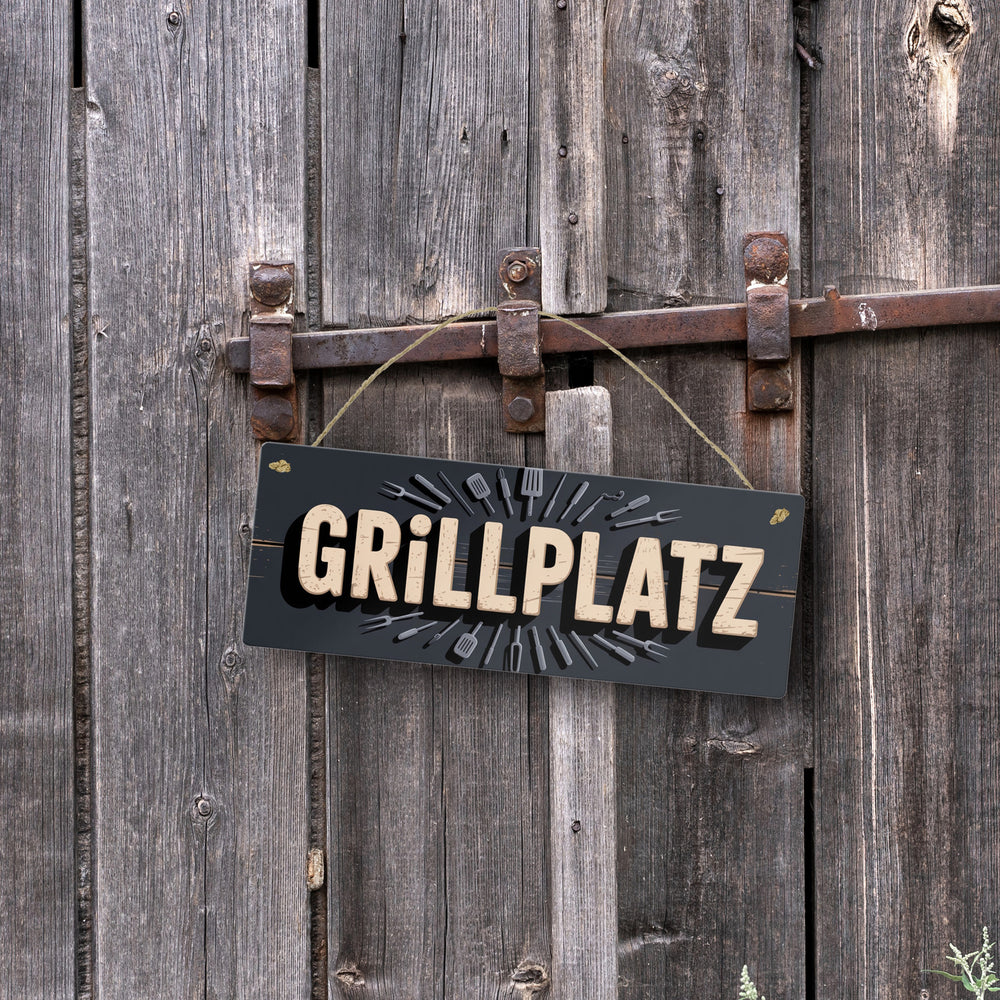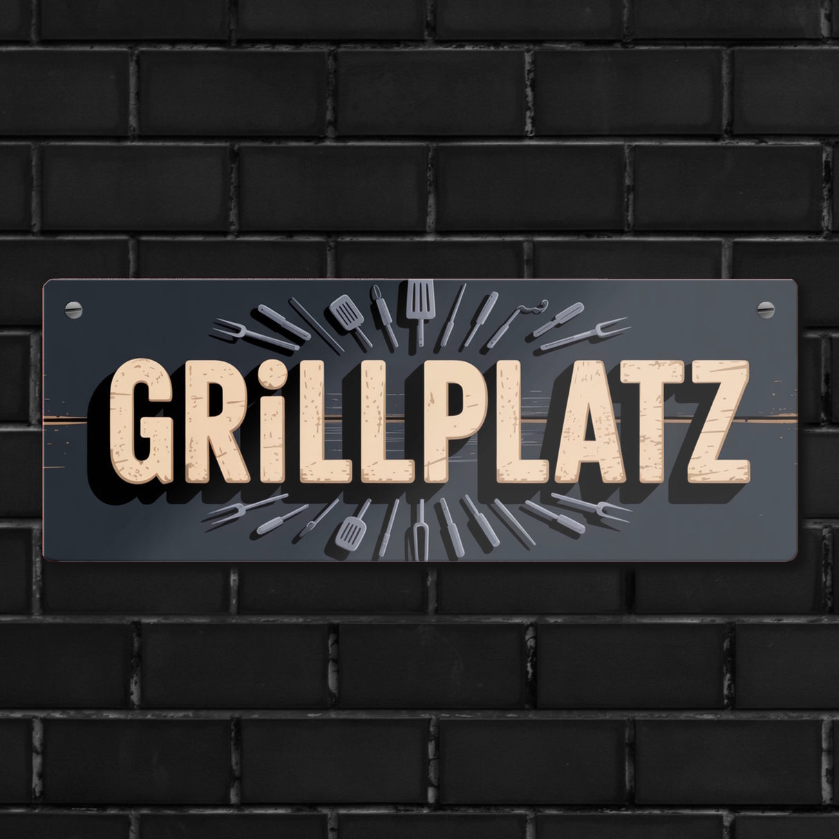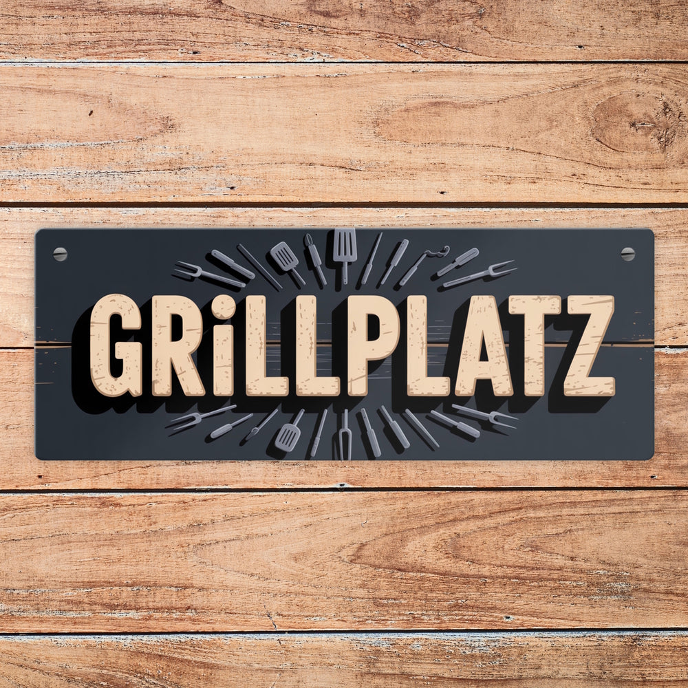 - Hol dir jetzt dieses lustige und hochwertige BBQ-Aluminiumschild „Grillplatz“ und verleihe deinem Grillbereich mit Charme und Witz eine persönliche Note. Entworfen und gedruckt mit viel Liebe, ist es das perfekte Accessoire für jeden Grillfan und sorgt für BBQ-Atmosphäre pur!
