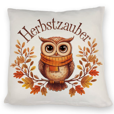 Niedliche Eule im Schal - Herbstzauber Kissen