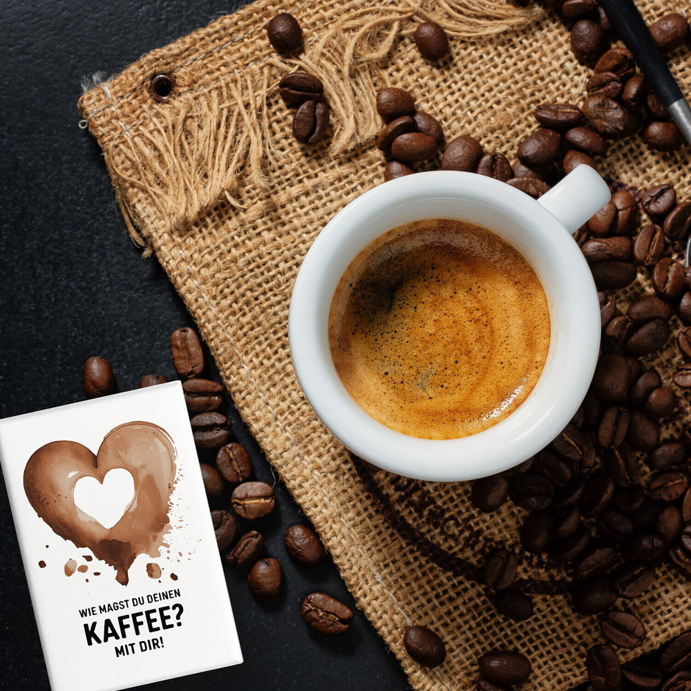 - Der herzförmige Kaffeefleck Souvenir Magnet besticht durch ein charmantes Kaffeeherz-Design auf einem schlichten, weißen Hintergrund. Ein großes Herz, geformt wie ein Kaffeefleck, umrahmt ein kleineres Herz. Der Spruch "Wie magst du deinen Kaffee? Mit dir!" verleiht diesem originellen Magneten eine persönliche Note.
