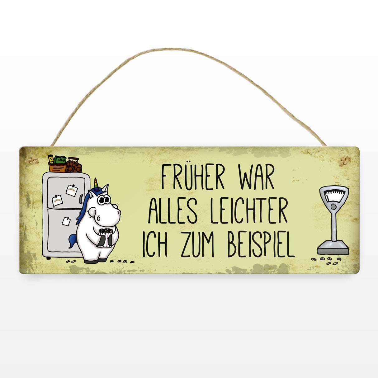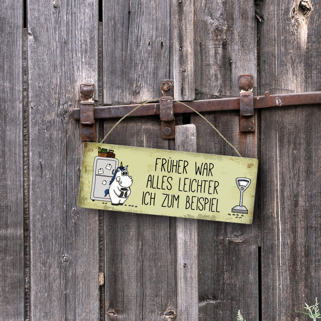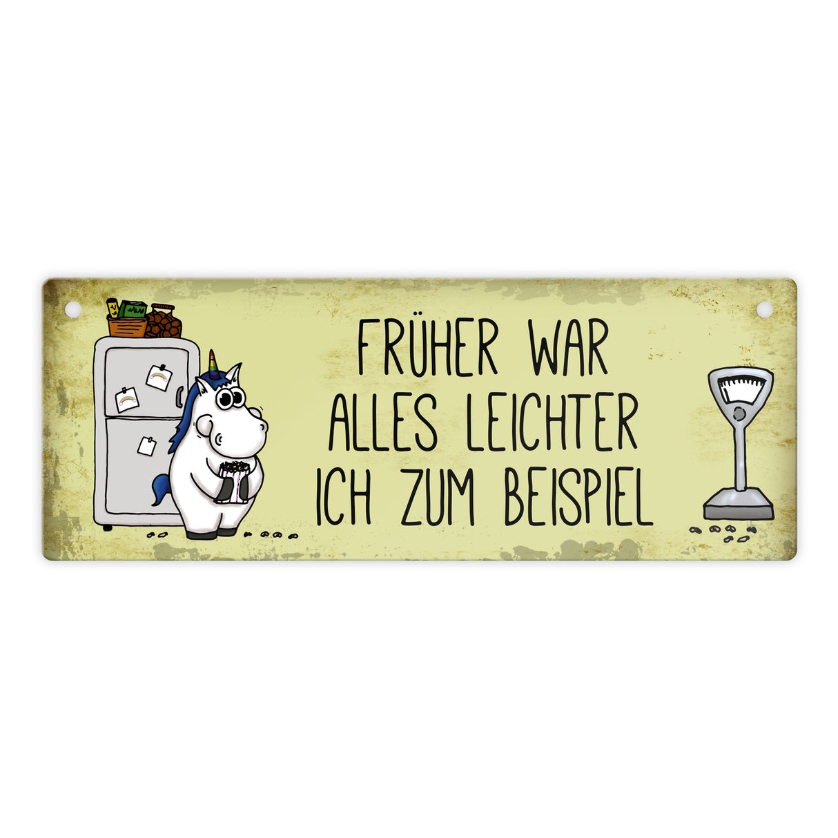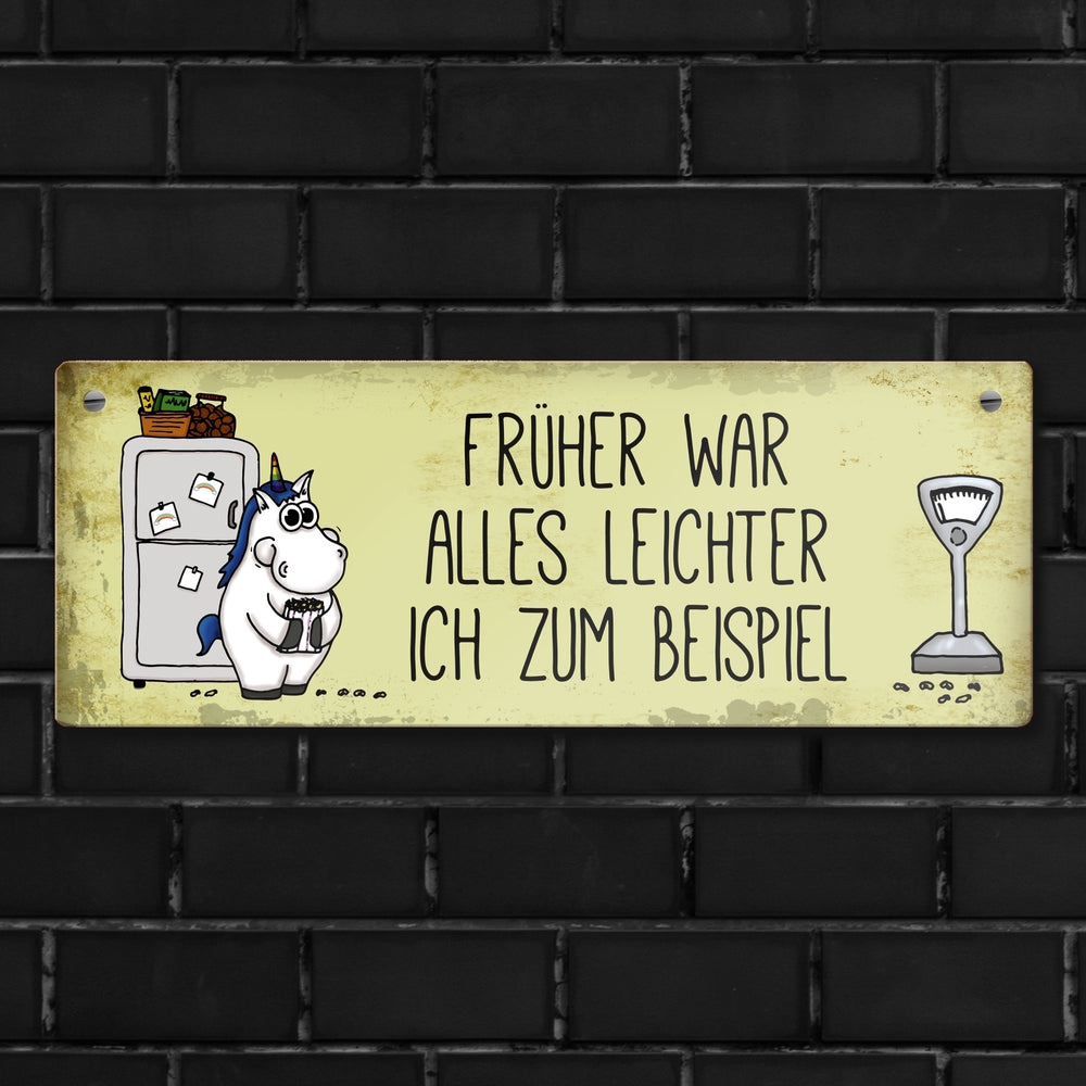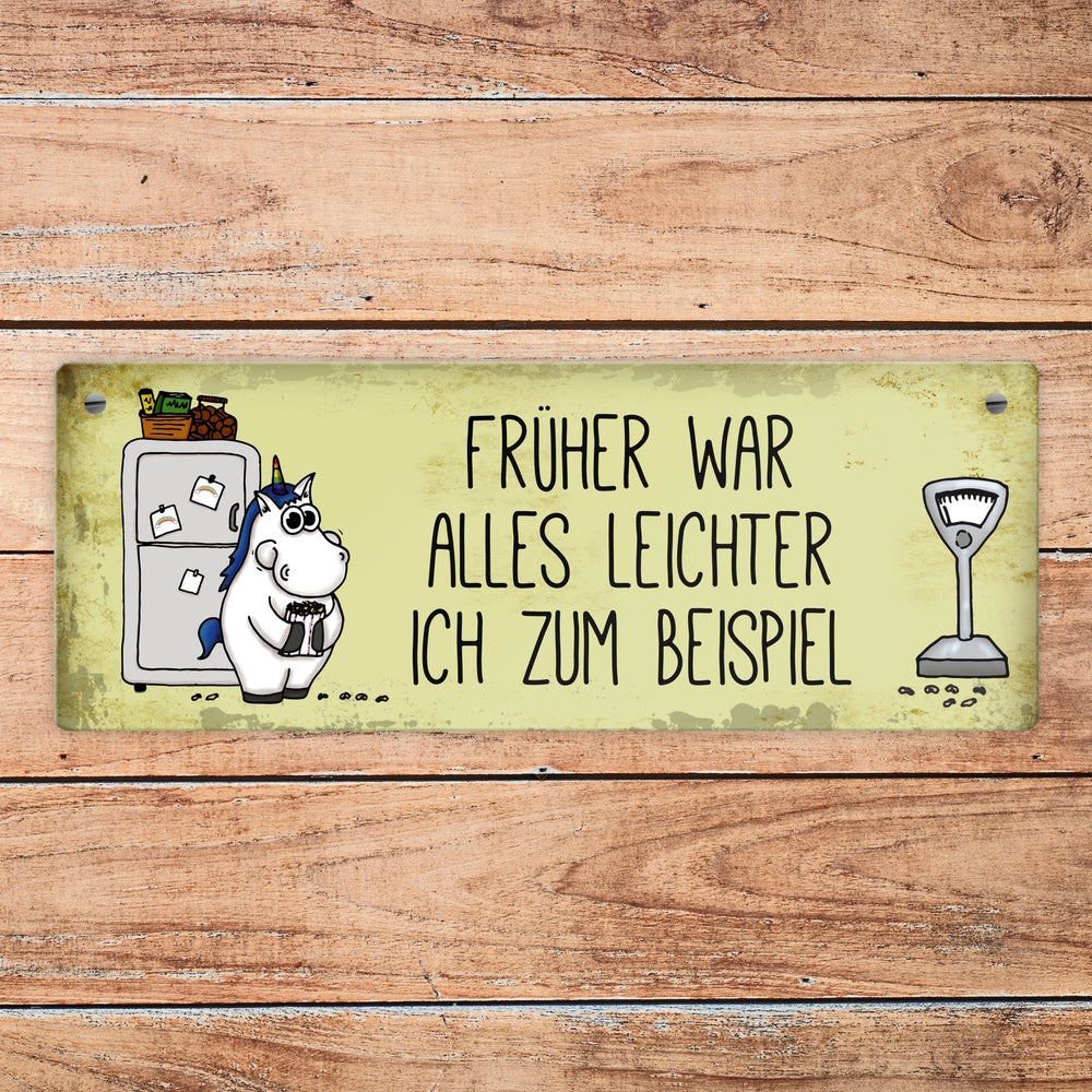 Honeycorns Metallschild mit dickes Einhorn Motiv und Spruch: Früher war alles leichter ...