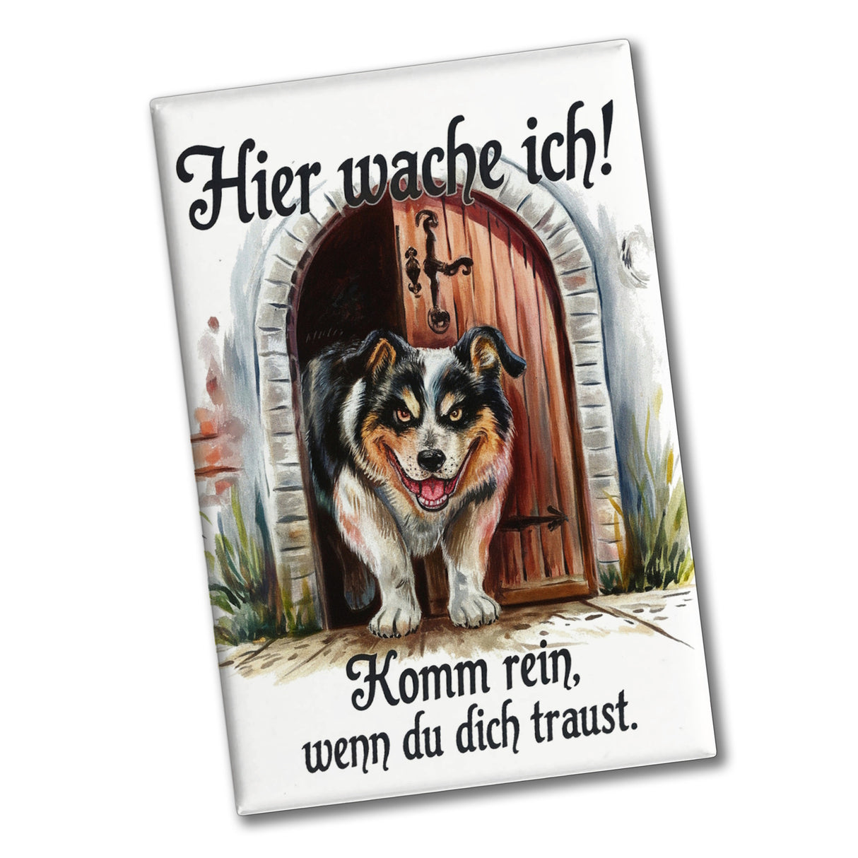 Hund bewacht Tür Hier wache ich Souvenir Souvenir Magnet