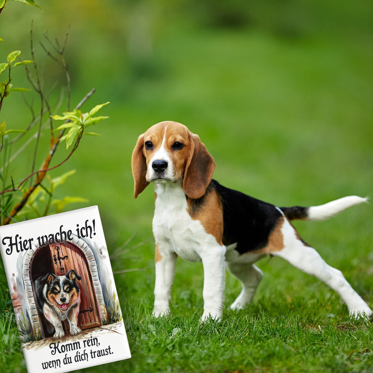 Entdecke den lustigen Kühlschrankmagneten mit dem charmanten "Hund bewacht Tür"-Motiv! Der rechteckige Magnet zeigt einen fröhlichen Border Collie, der mit einem schelmischen Grinsen aus einer Holztür hervorschaut. Der Hund besitzt ein schwarz-wei Hinweise: Größe: ca. 8x5,5 cm
