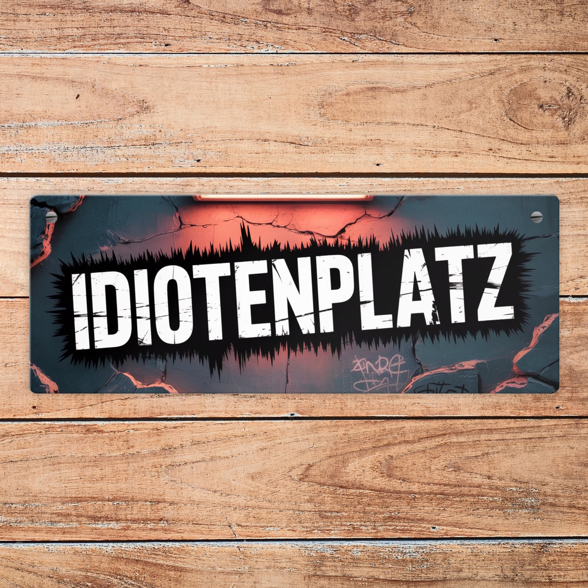 - 1x Idiotenplatz Metallschild Graffiti Design in der gewählten Größe