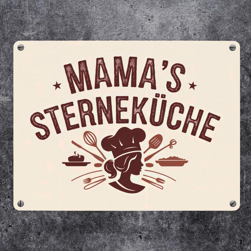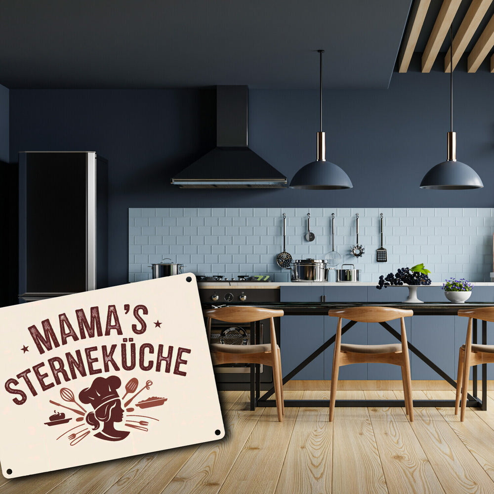 Mama´s Sterneküche Souvenir Metallschild in 15x20 cm für Hobbyköche und Mütter - 15x20 cm ist auf Lager und wird versandt, sobald es wieder verfügbar ist