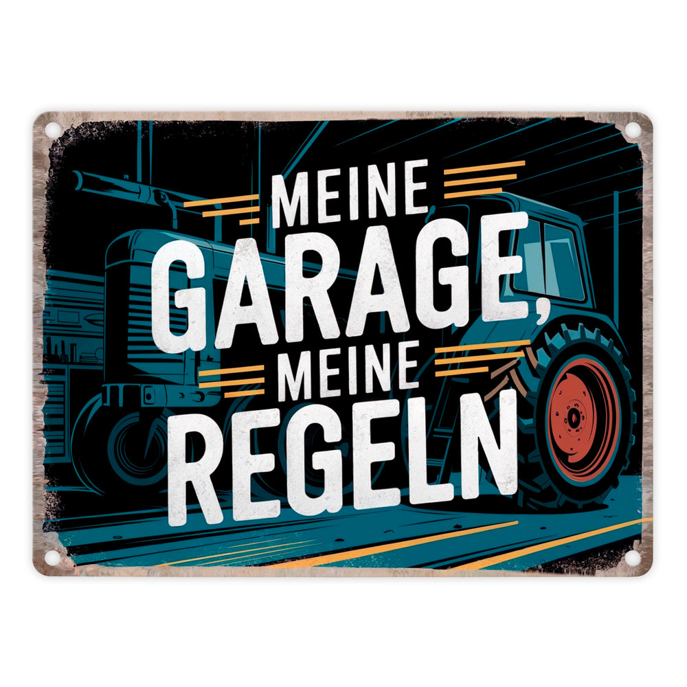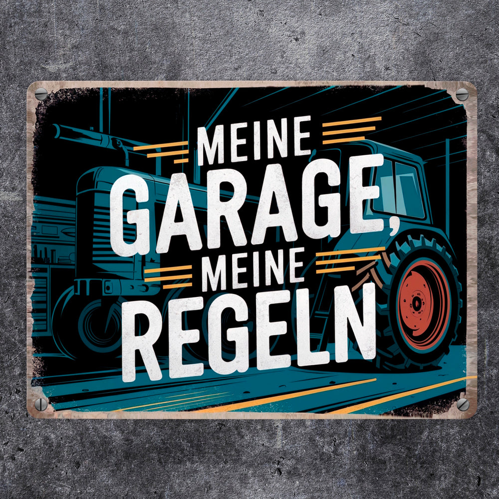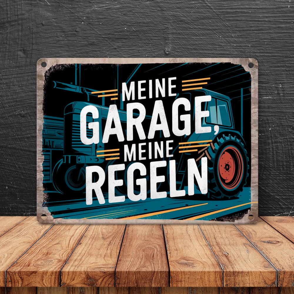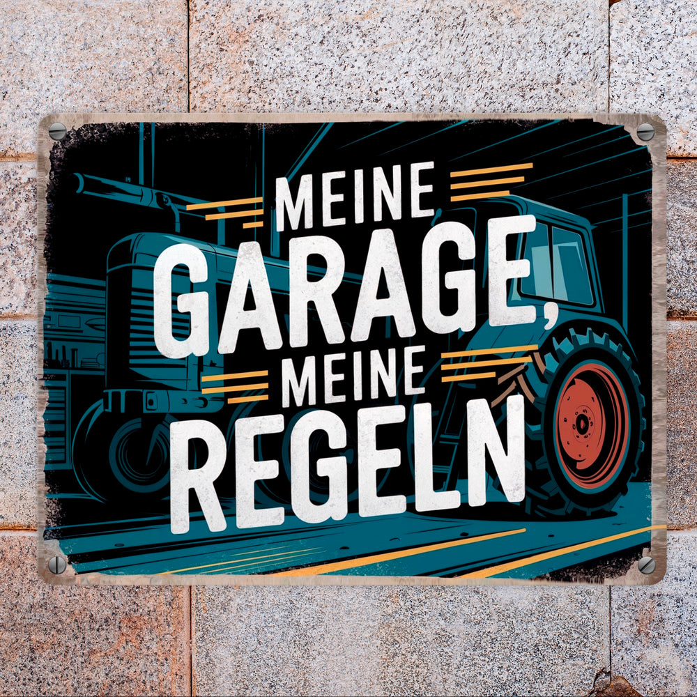 Meine Garage meine Regeln - Traktor Metallschild in 15x20 cm
