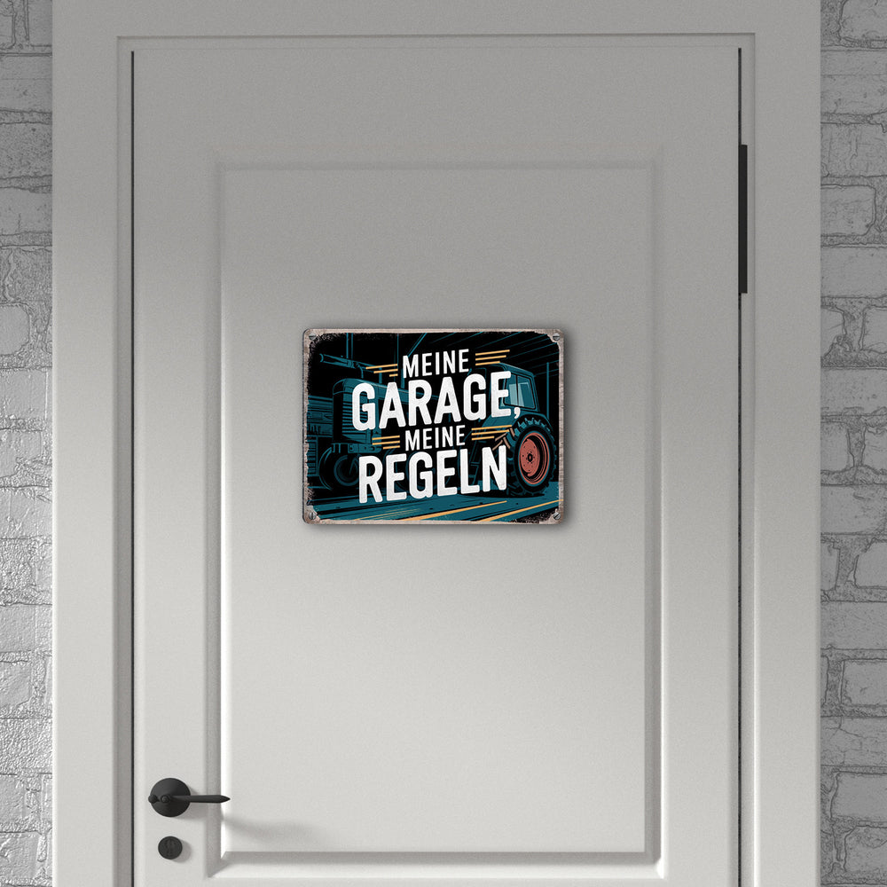 Meine Garage meine Regeln Metallschild im Used-Look