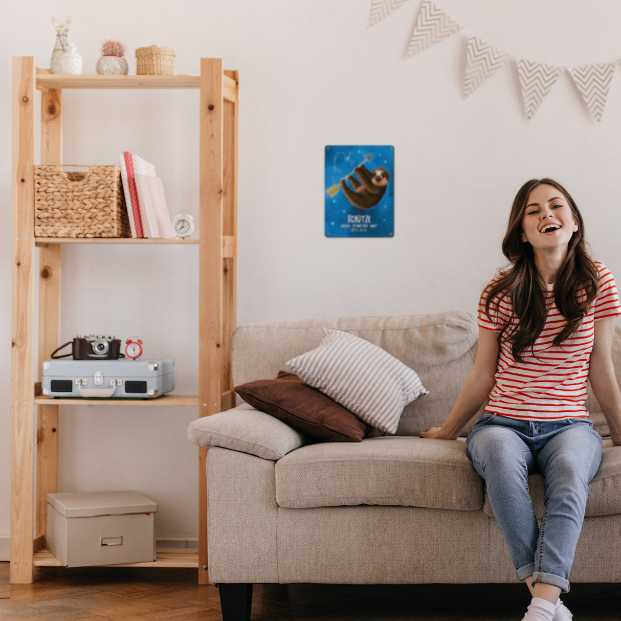 Metallschild mit Faultier Sternzeichen Schütze Motiv