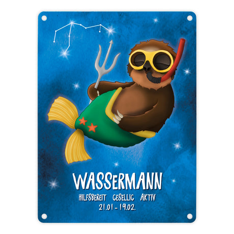 Metallschild mit Faultier Sternzeichen Wassermann Motiv