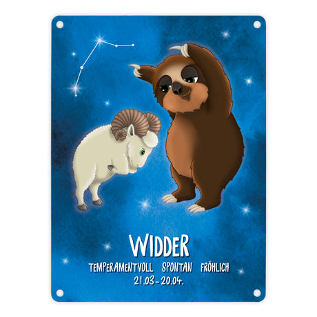 Metallschild mit Faultier Sternzeichen Widder Motiv