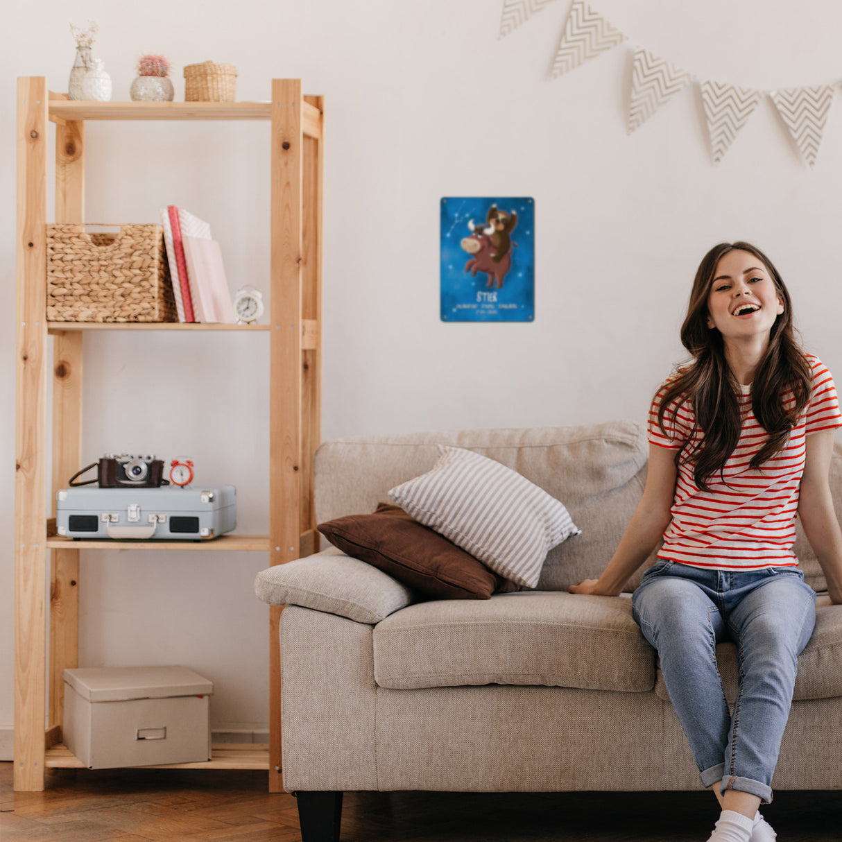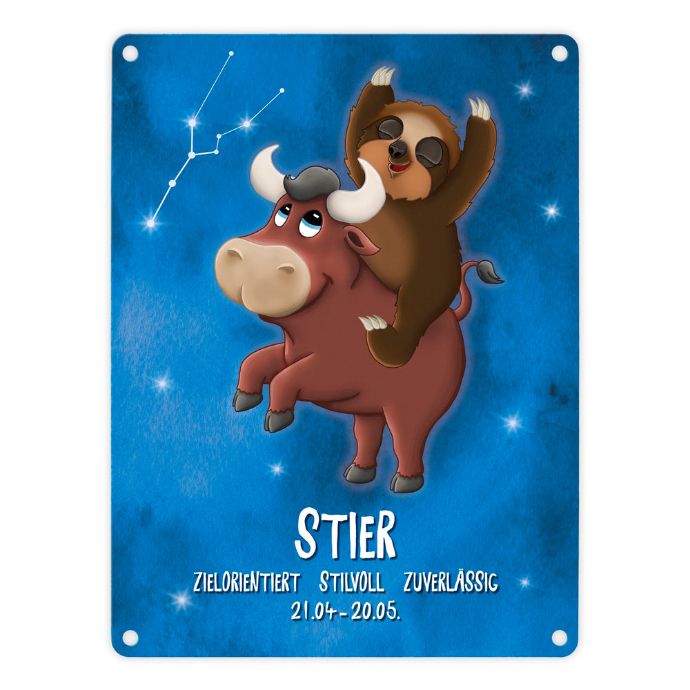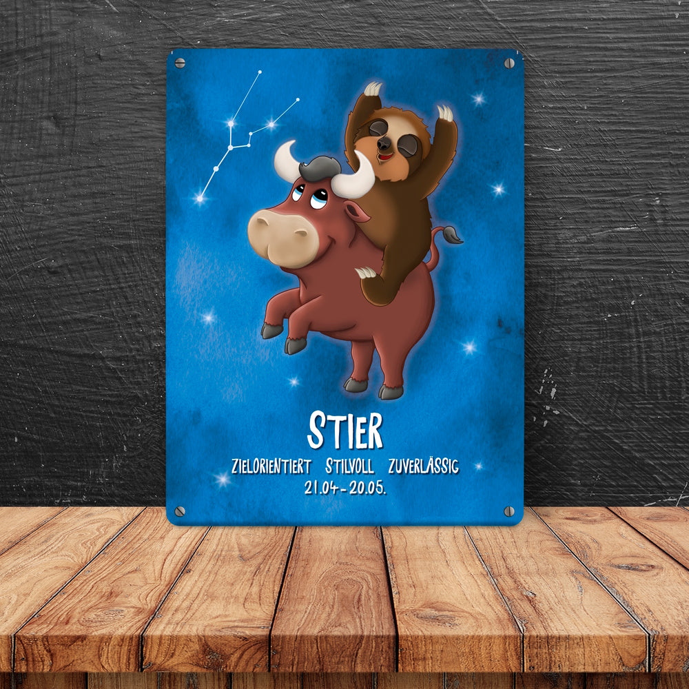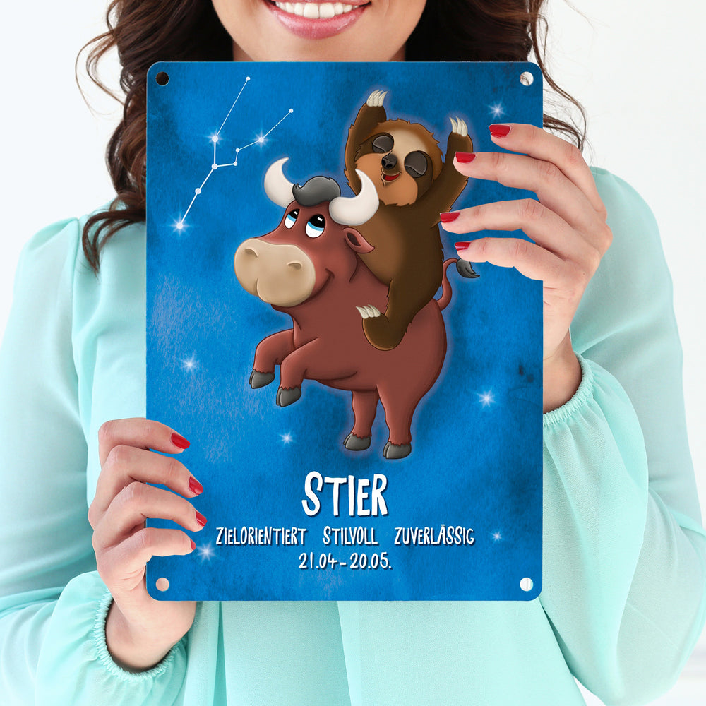 Metallschild mit Faultier Sternzeichen Stier Motiv