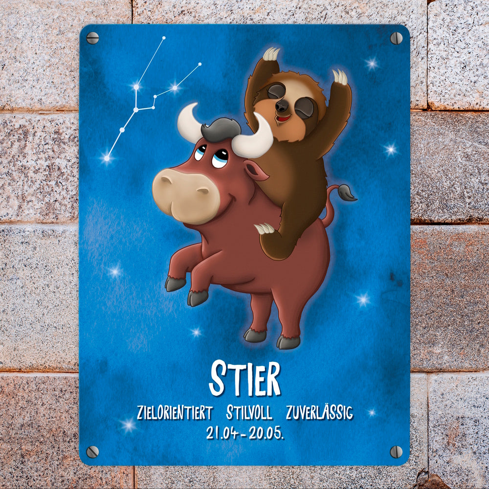• Lieferumfang: Metallschild mit Faultier Sternzeichen Stier Motiv