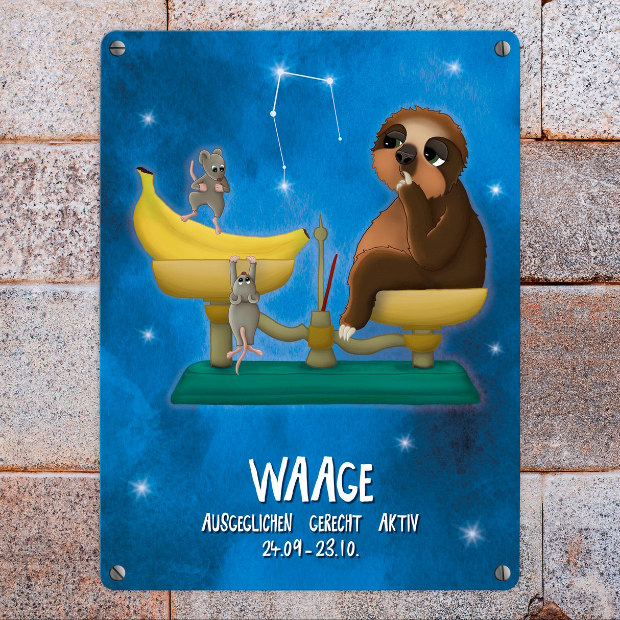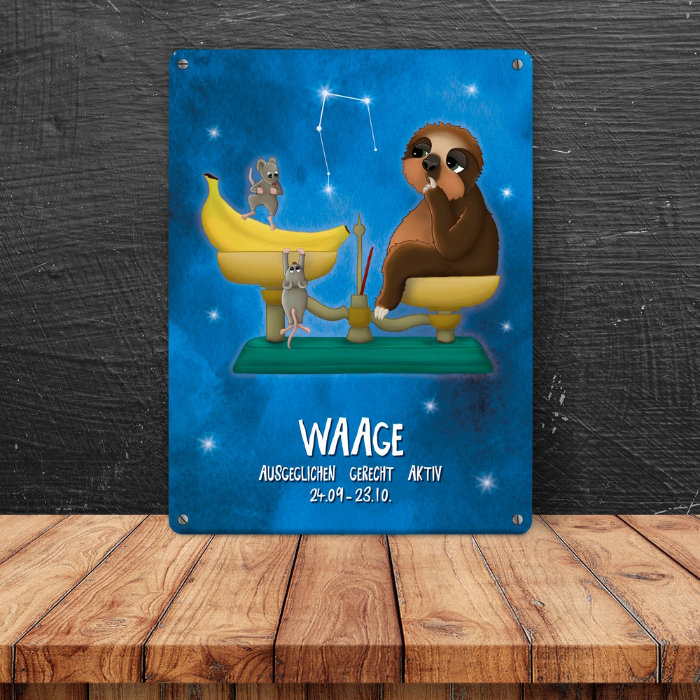 • Lieferumfang: Metallschild mit Faultier Sternzeichen Waage Motiv