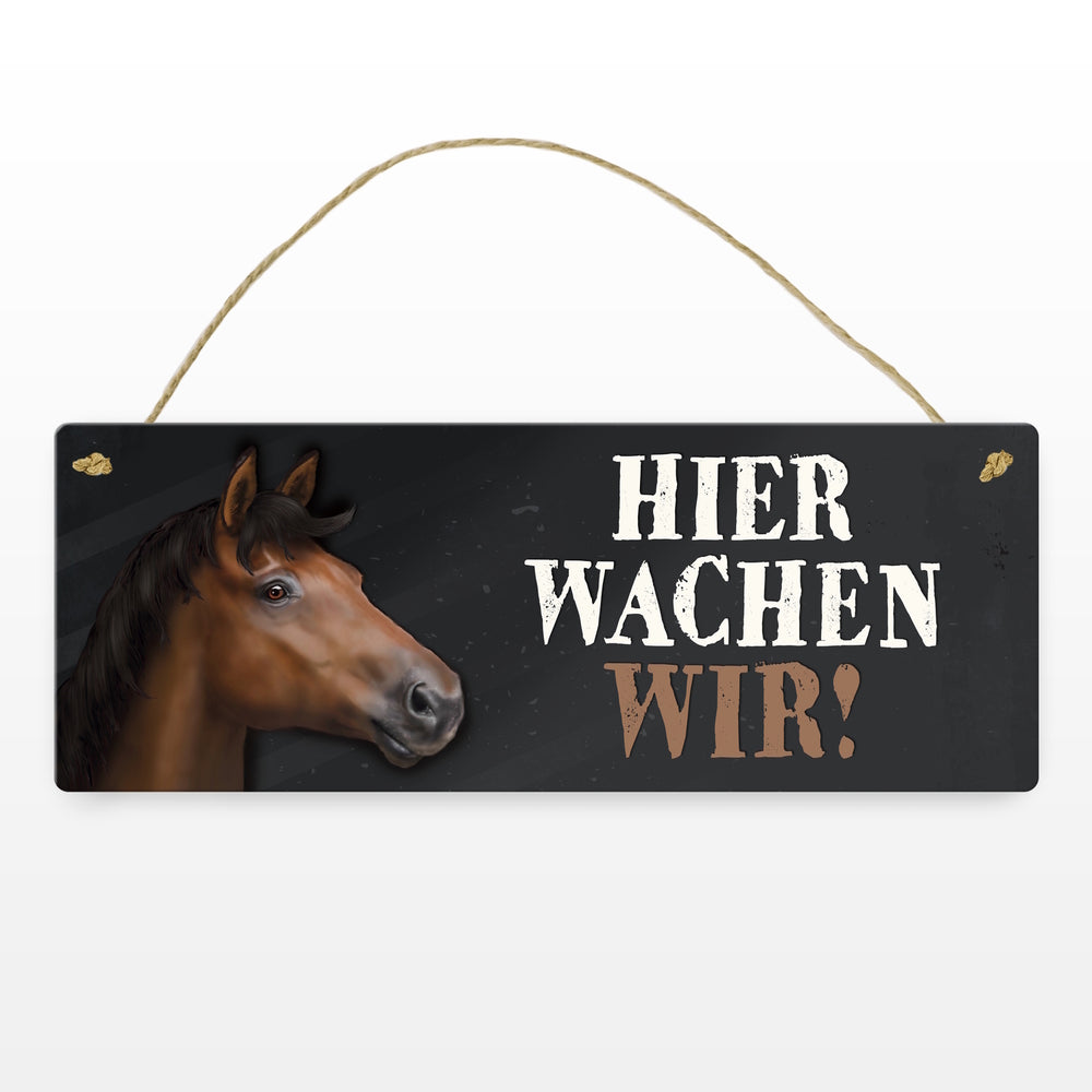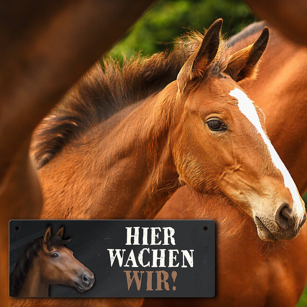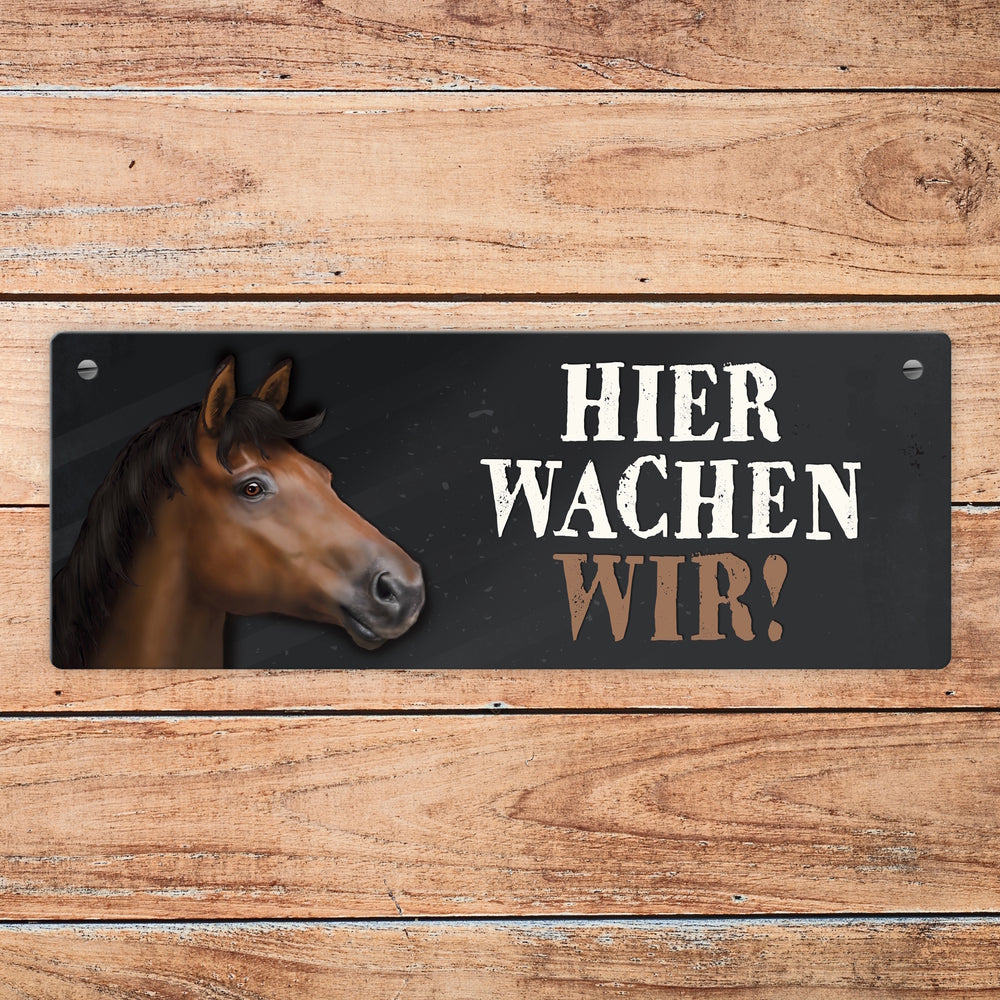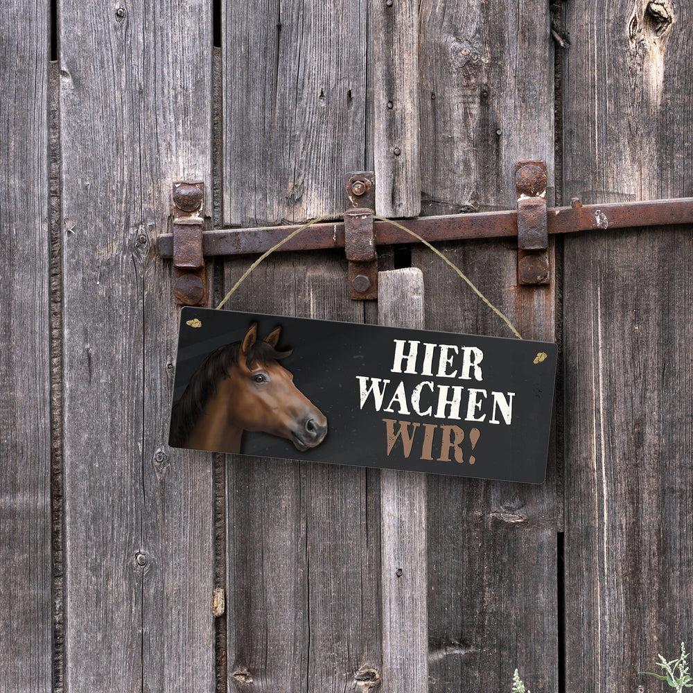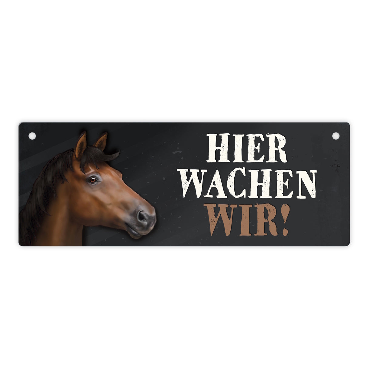 - Lieferumfang: 1x Metallschild mit Pferd Motiv und Spruch: Hier wachen wir!