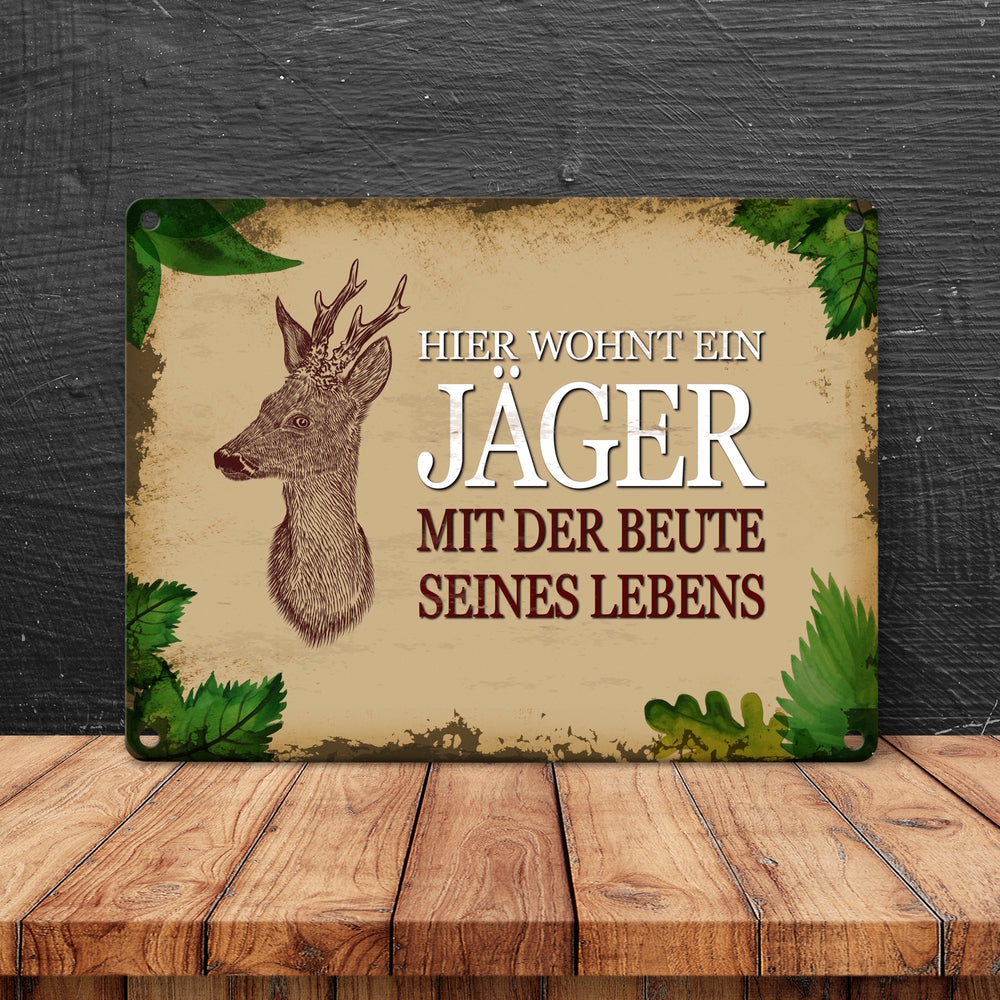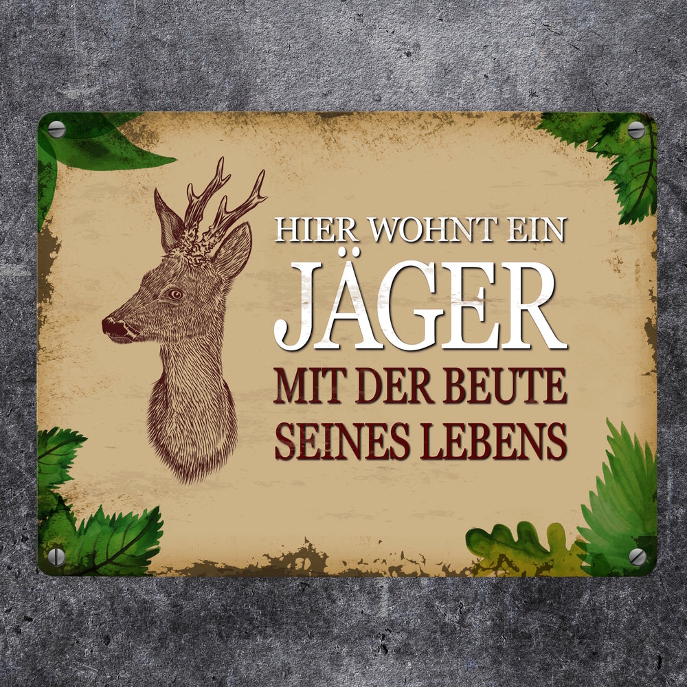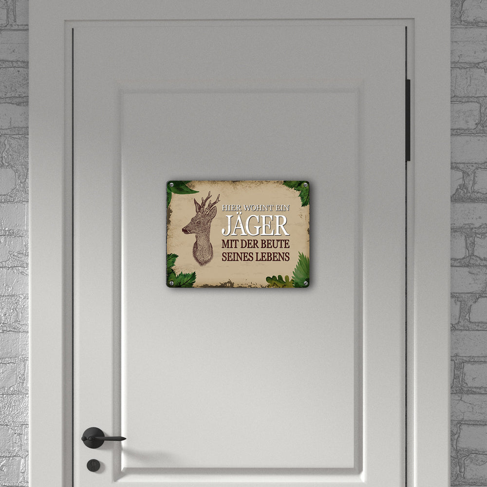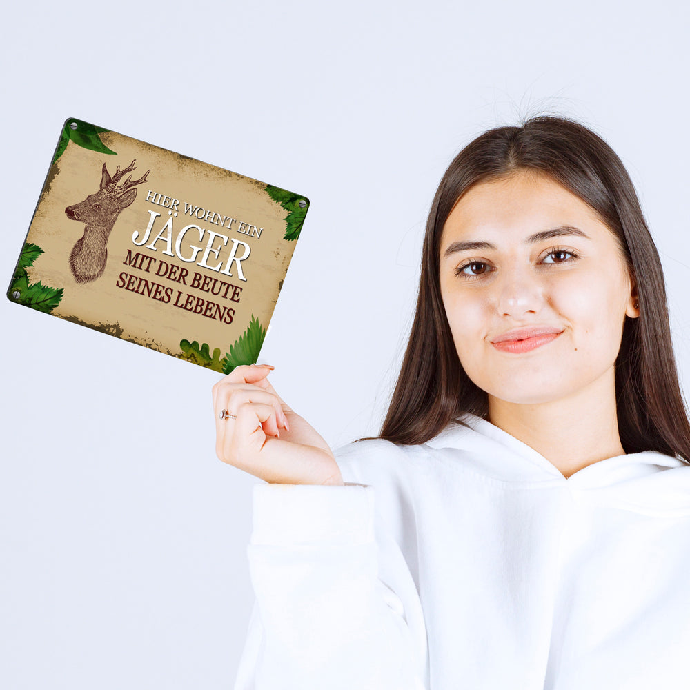 - 1x Metallschild mit Spruch: Hier wohnt ein Jäger - mit der ... in der gewählten Größe
