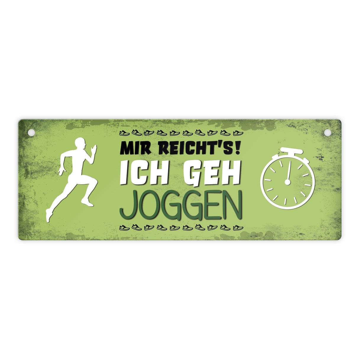 - 1x Metallschild mit Spruch: Mir reicht's! Ich geh joggen in der gewählten Größe