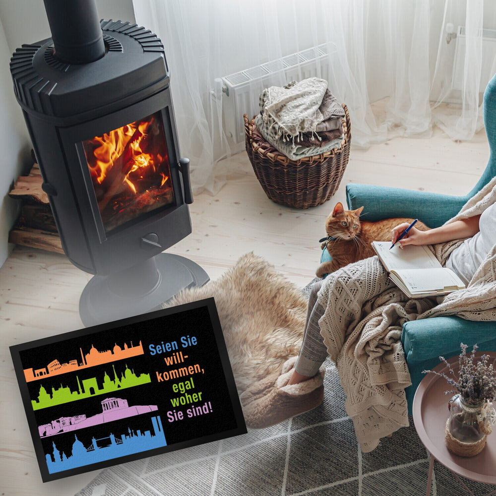 Metropolen Fußmatte in 35x50 cm mit Spruch: Willkommen, egal woher Sie sind!