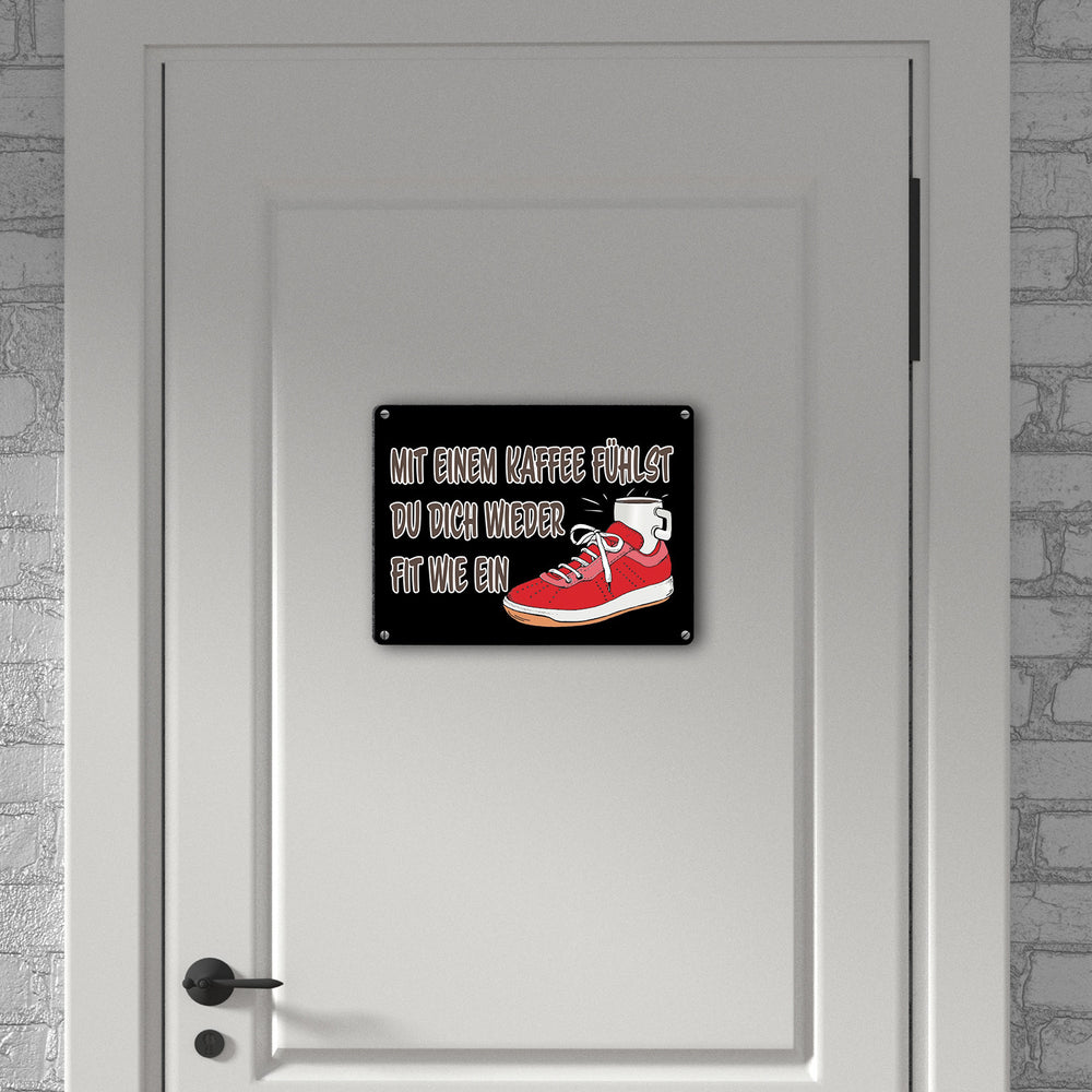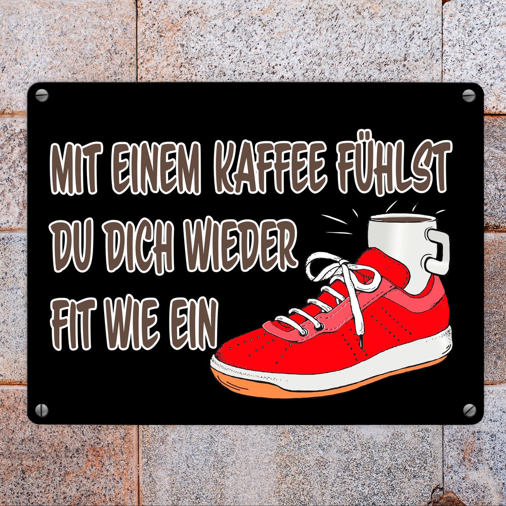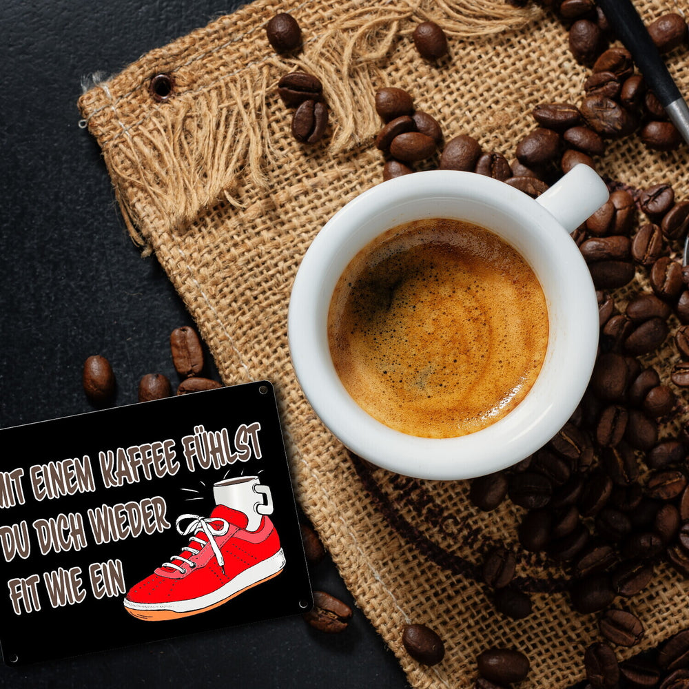 Mit Kaffee fühlst du dich fit Metallschild in 15x20 cm