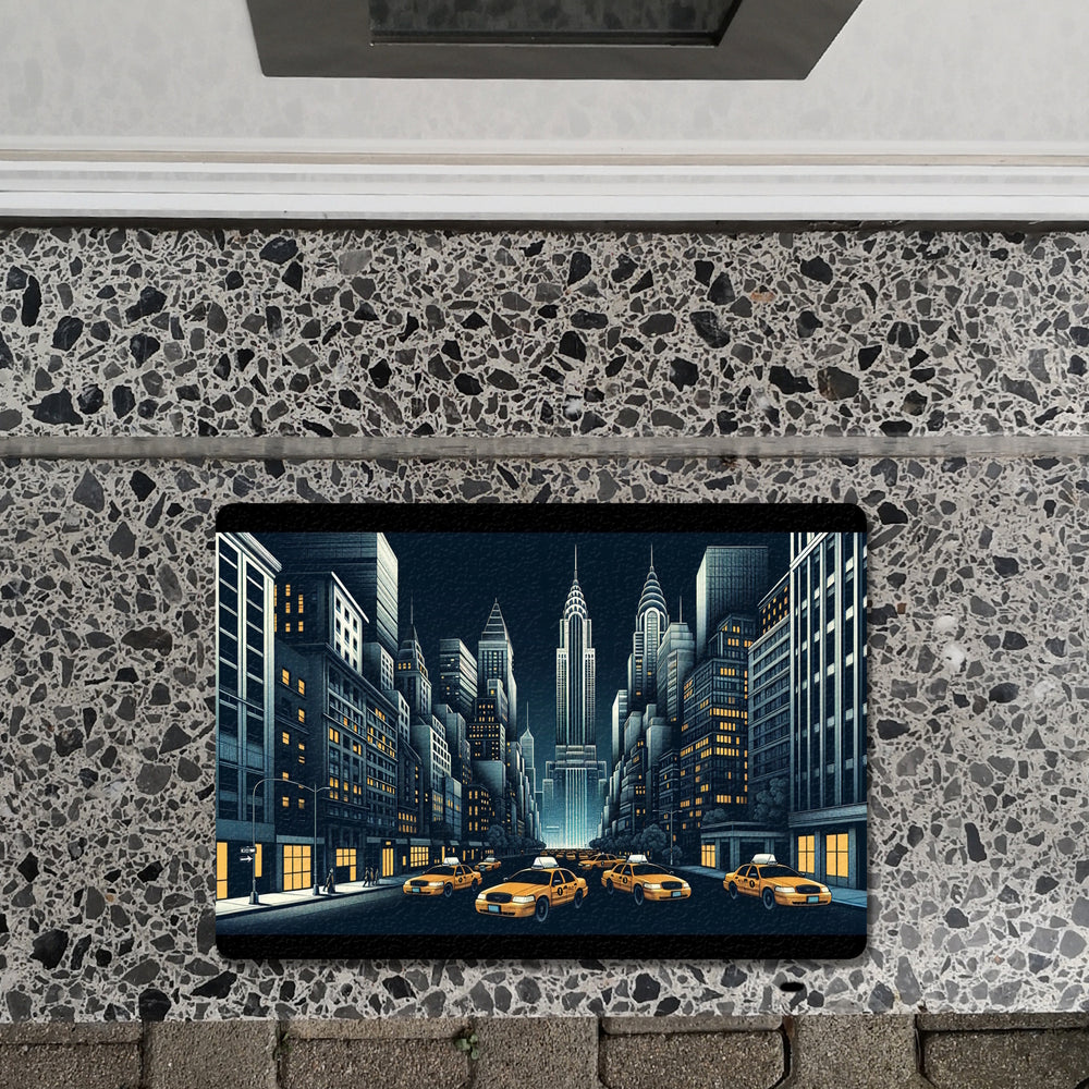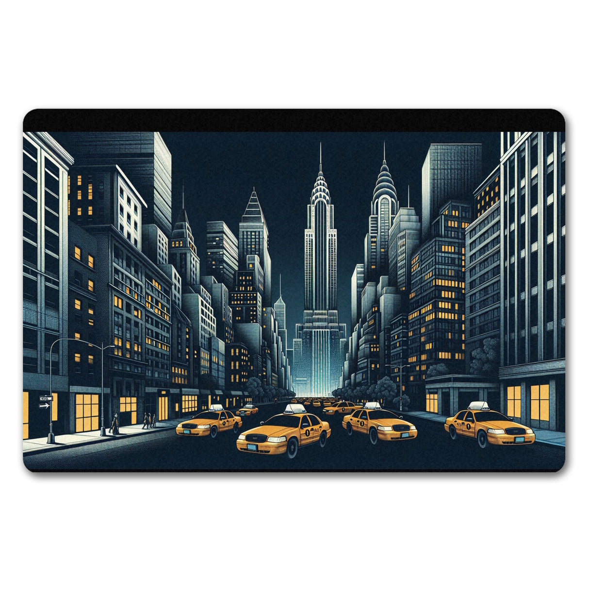 - Willkommen in der Big Apple Fußzone! Mit der "New Yorker Häuserschlucht und Taxis Fußmatte" betrittst du stilvoll deine eigene Metropole. Die legendären Yellow Cabs und Wolkenkratzer direkt vor deiner Tür – ohne den Großstadtlärm! Mach jeden Schritt zu einem Spaziergang durch Manhattan.