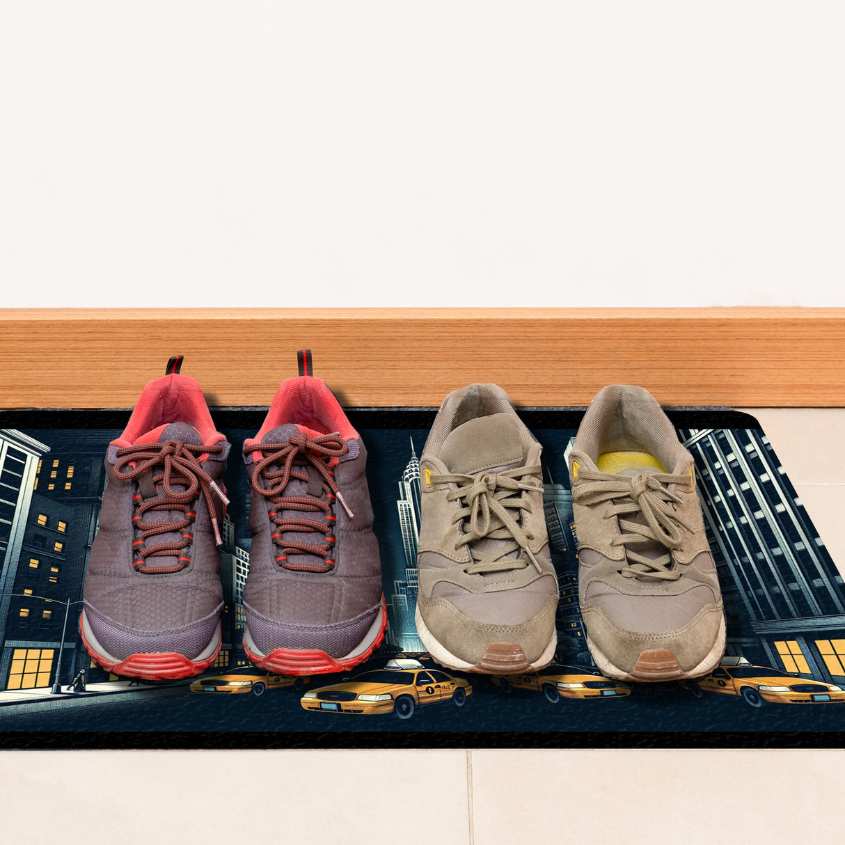 - Mit dieser schicken Matte parken deine Schuhe, als würden sie ein Taxi in Downtown ergattern – prompt und ohne Umwege. Haltbar wie das New Yorker Straßenpflaster, wird diese Fußmatte zum Eyecatcher in deiner Flur-Skyline. Hol dir ein Stück Stadtflair nach Hause!