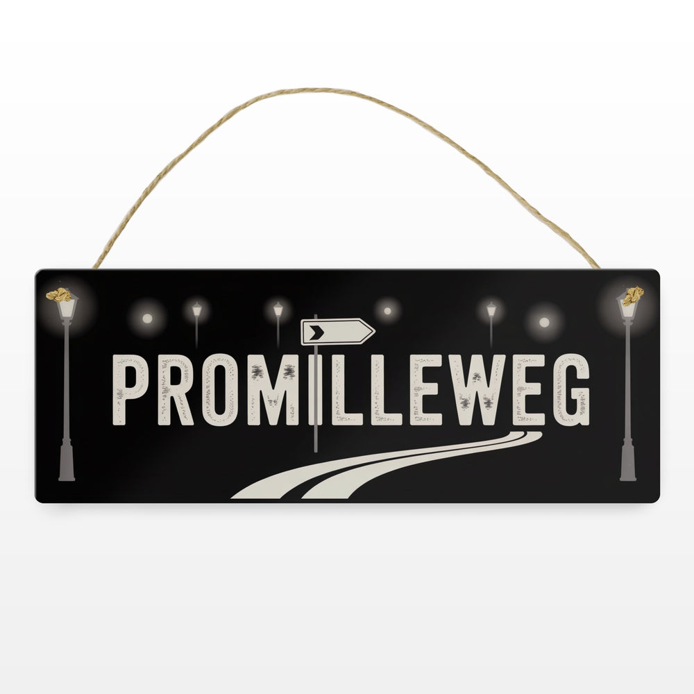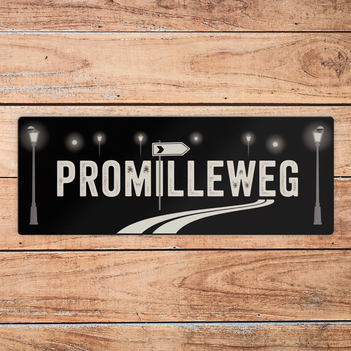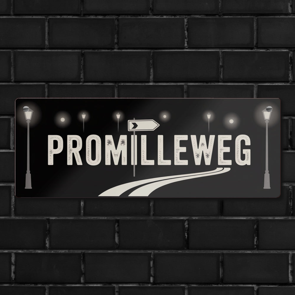 - Hol dir jetzt das Metallschild "Promilleweg" und verleihe deiner Feier den ultimativen Partykick! Mit Liebe designt und gedruckt, garantiert es ein Qualitätsprodukt, das sowohl robust als auch stilvoll ist. Mach deine Partydeko komplett und bring Licht in die Nacht mit diesem einzigartigen Straßenschild!