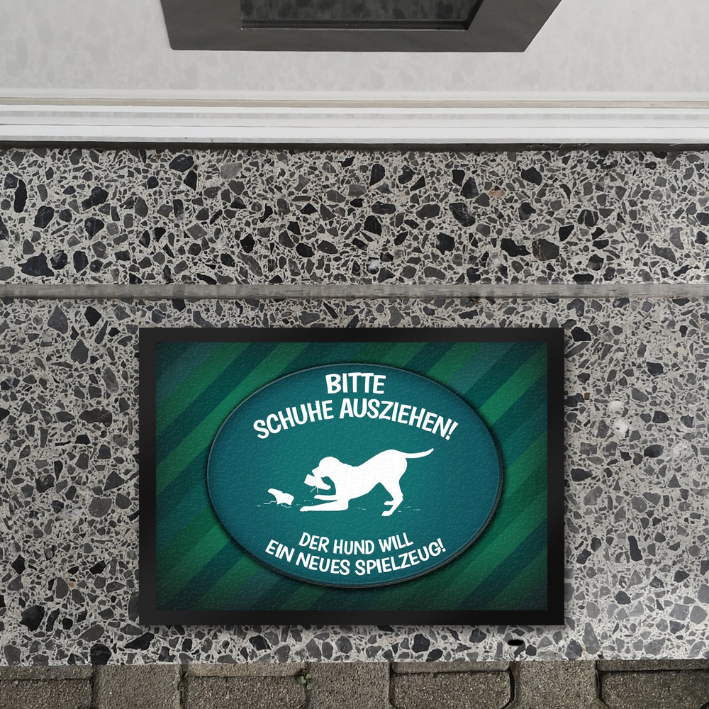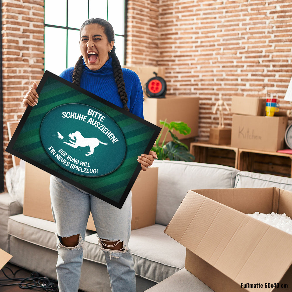 - 1x Schuhe ausziehen, der Hund will neues Spielzeug Fußmatte - spielen Wohnung Schuh Hunde Haushalt Füße in der gewählten Größe