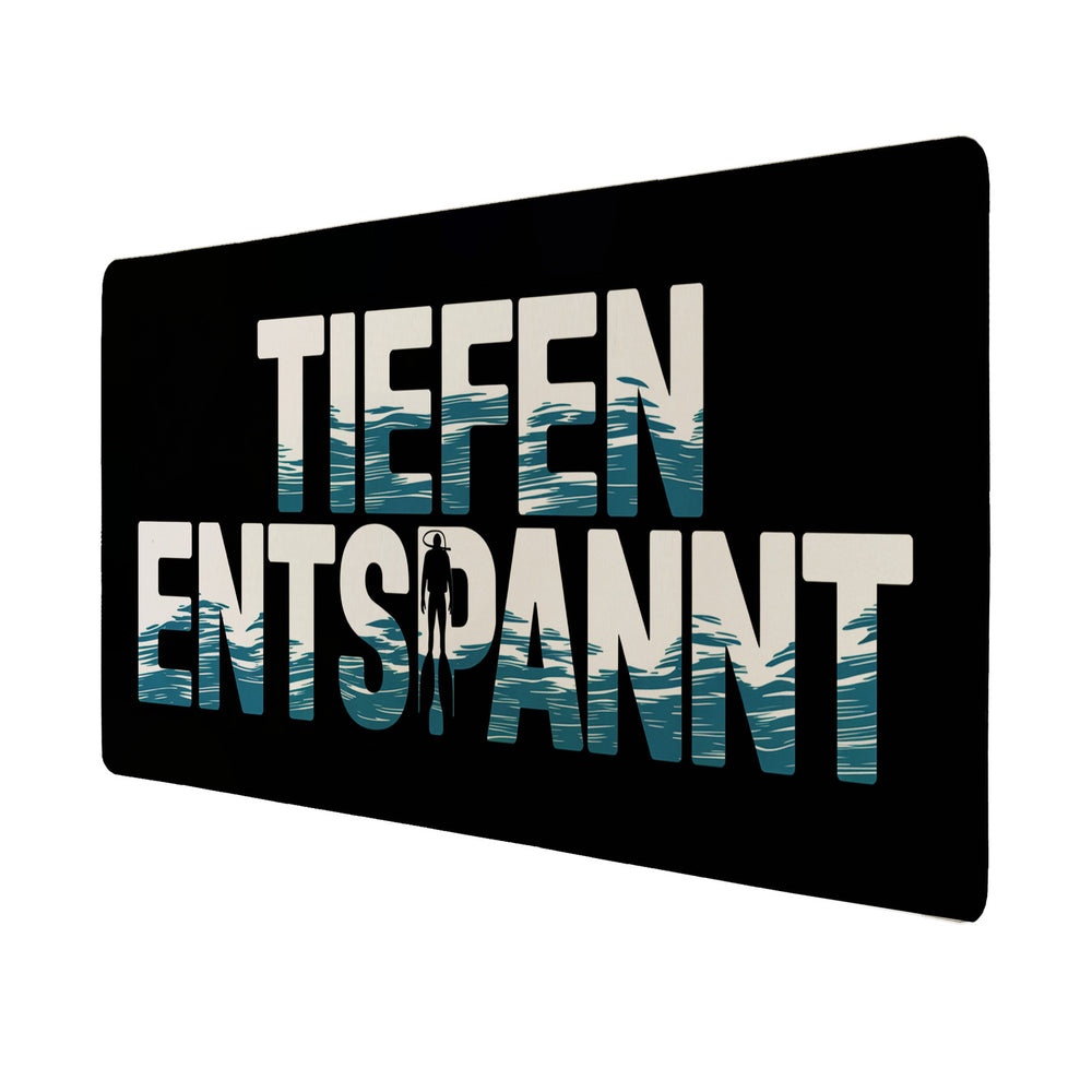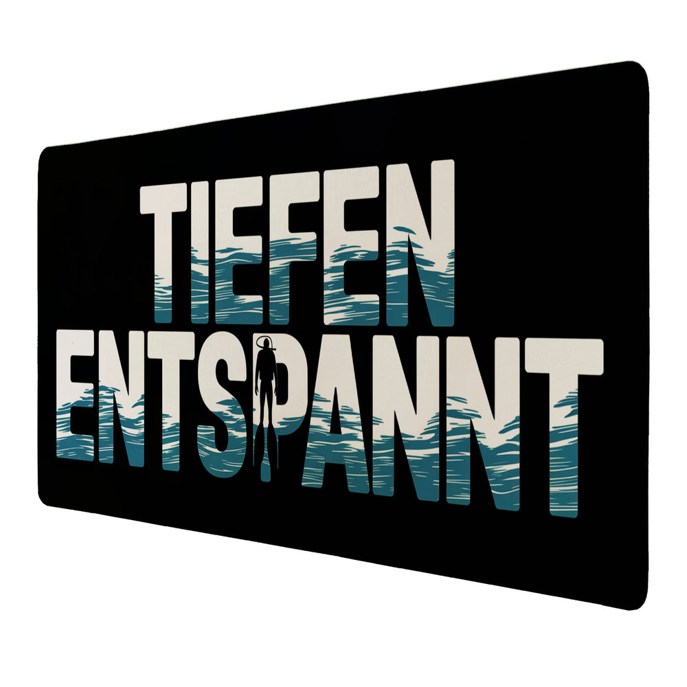 - Diese Schreibtischunterlage im maritimen Stil zieht mit einem tiefschwarzen Hintergrund alle Blicke auf sich. Der Kontrast der weißen und blauen Buchstaben "TIEFEN ENTSPANNT" bringt die Taucher-Silhouette hervorragend zur Geltung. Der Look ist modern, lustig und perfekt für jeden, der das Meer liebt.