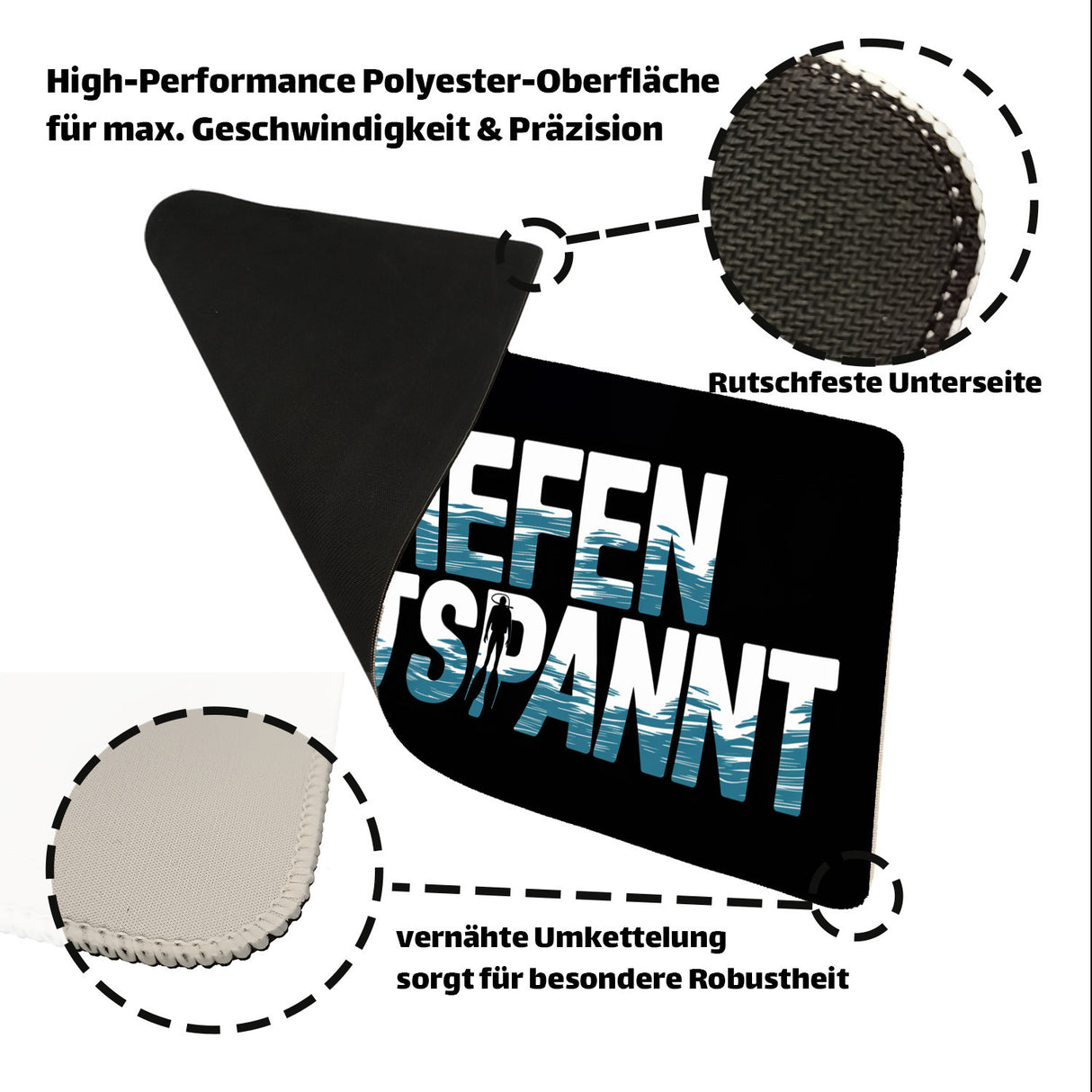 - 1x Taucher Silhouette - TIEFEN ENTSPANNT Schreibtischunterlage 69x31cm XXL Mauspad in der gewählten Größe