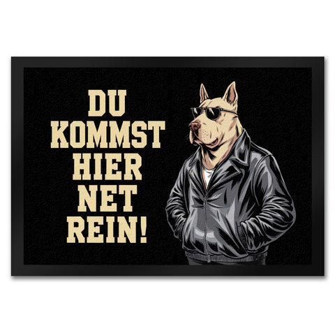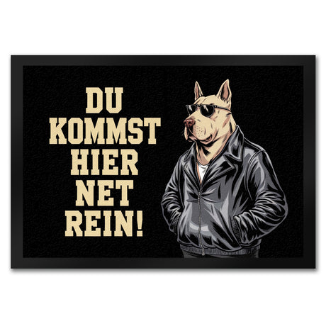 Türsteher Hund in Lederjacke Fußmatte in 35x50 cm - Du kommst hier net rein