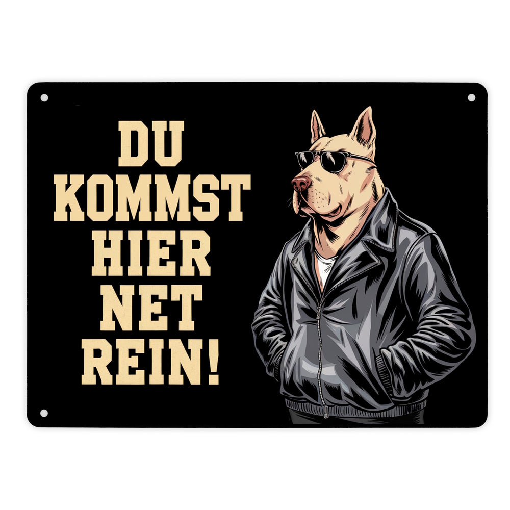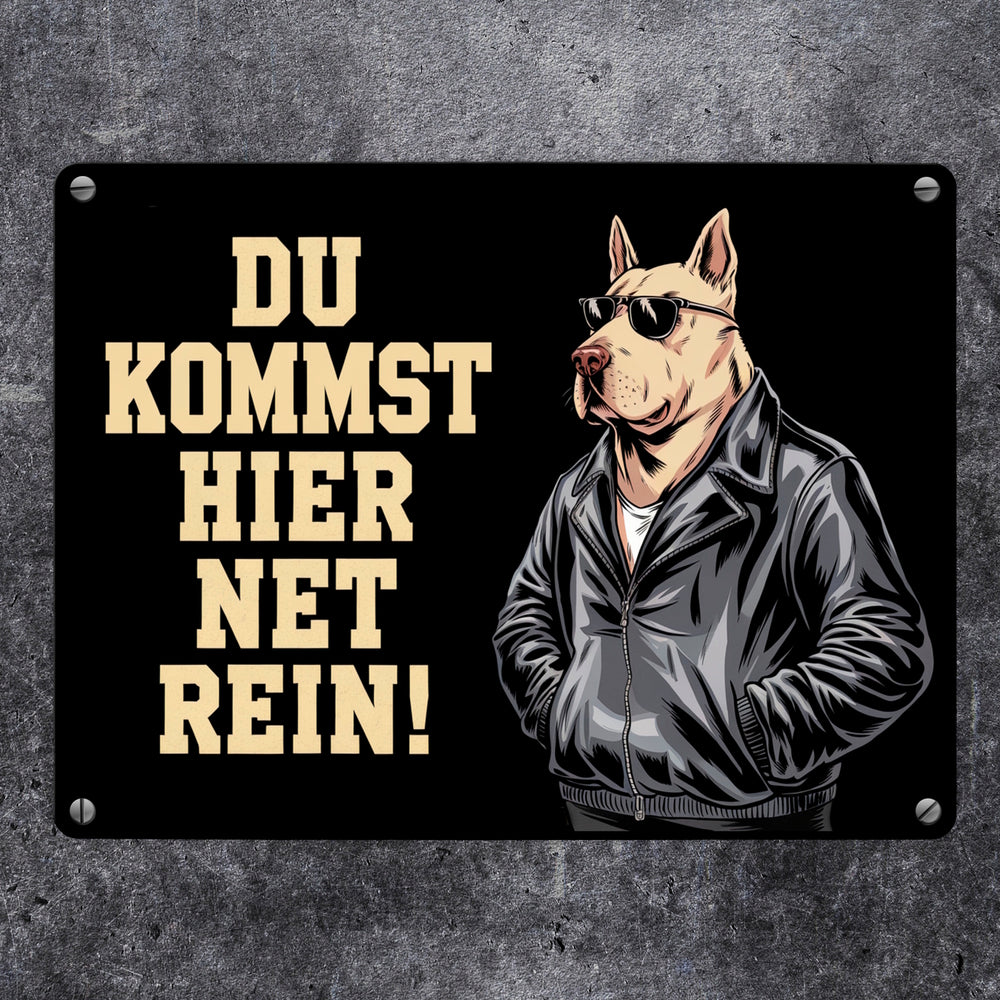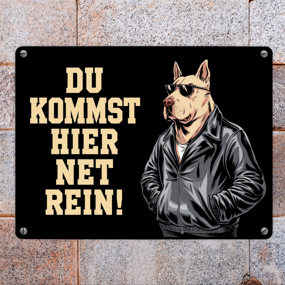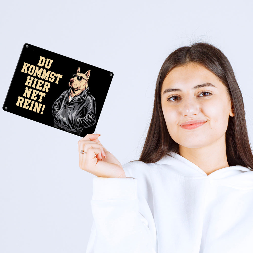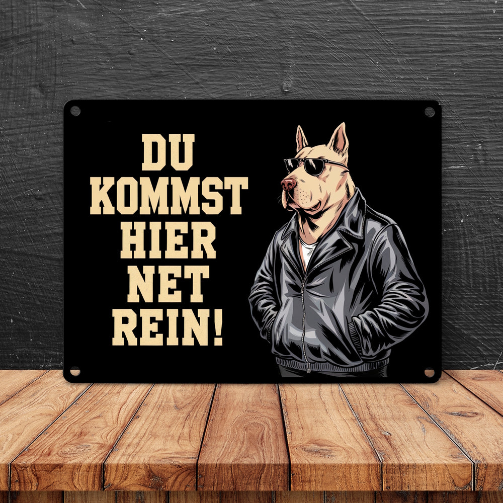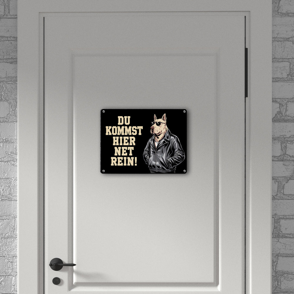Türsteher Hund in Lederjacke Metallschild in 15x20 cm - Du kommst hier net rein