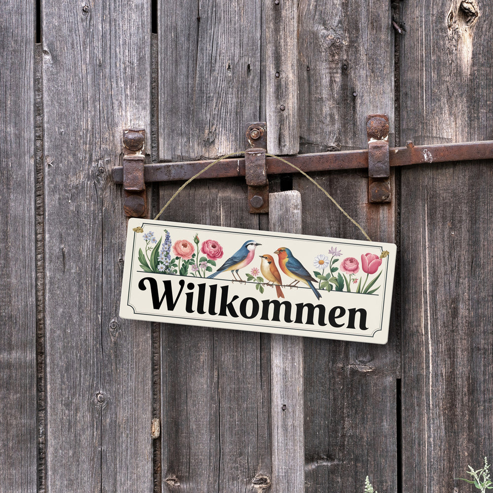 Vögel und Blumen Willkommen Metallschild - Frühling - 7,5x20 cm ist auf Lager und wird versandt, sobald es wieder verfügbar ist