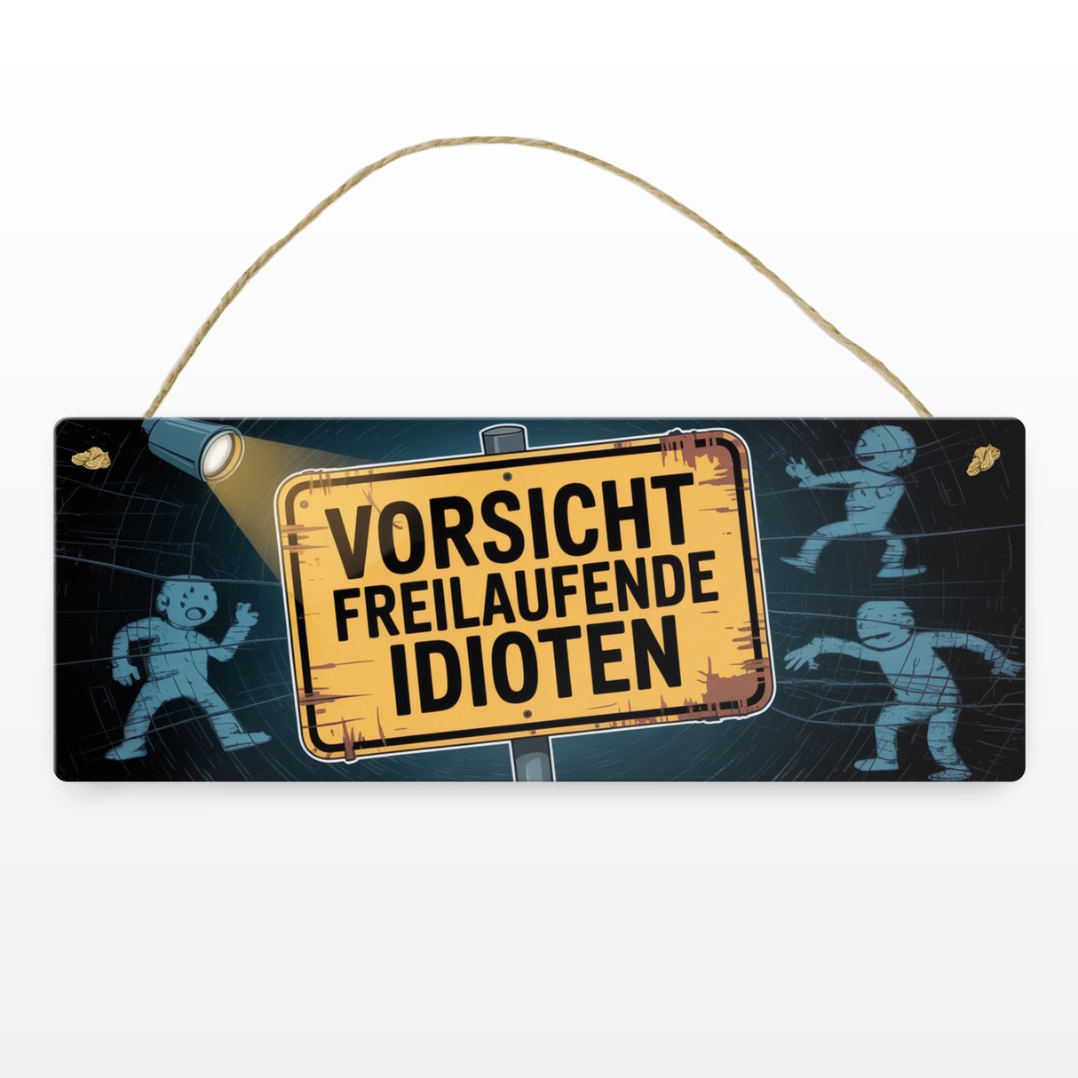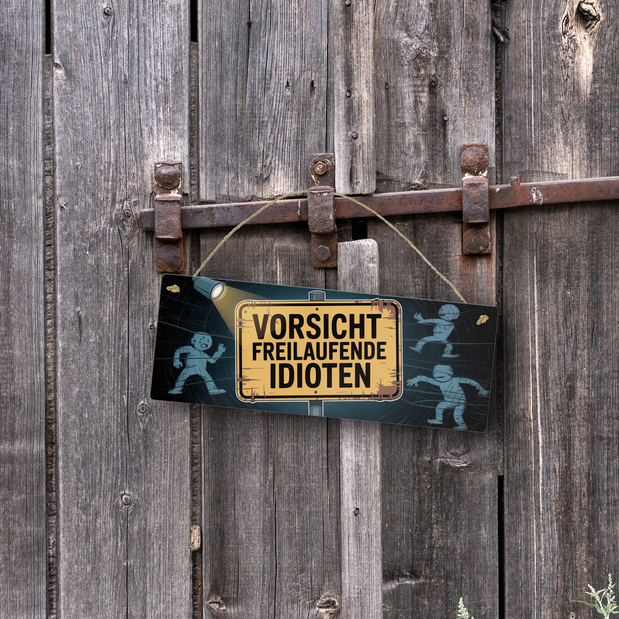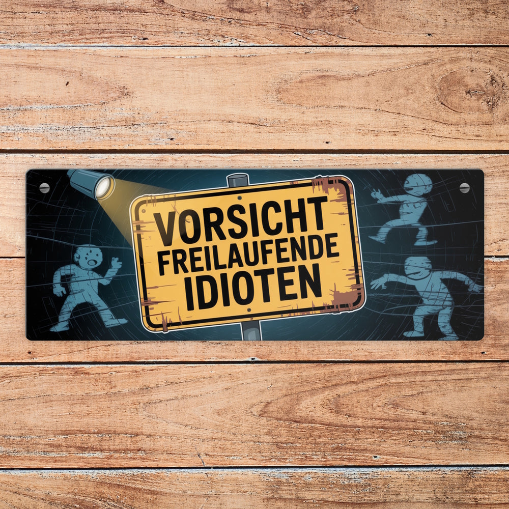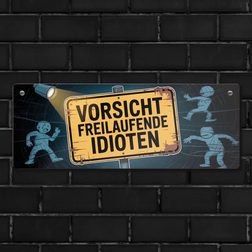 - 1x Vorsicht freilaufende Idioten Metallschild in der gewählten Größe